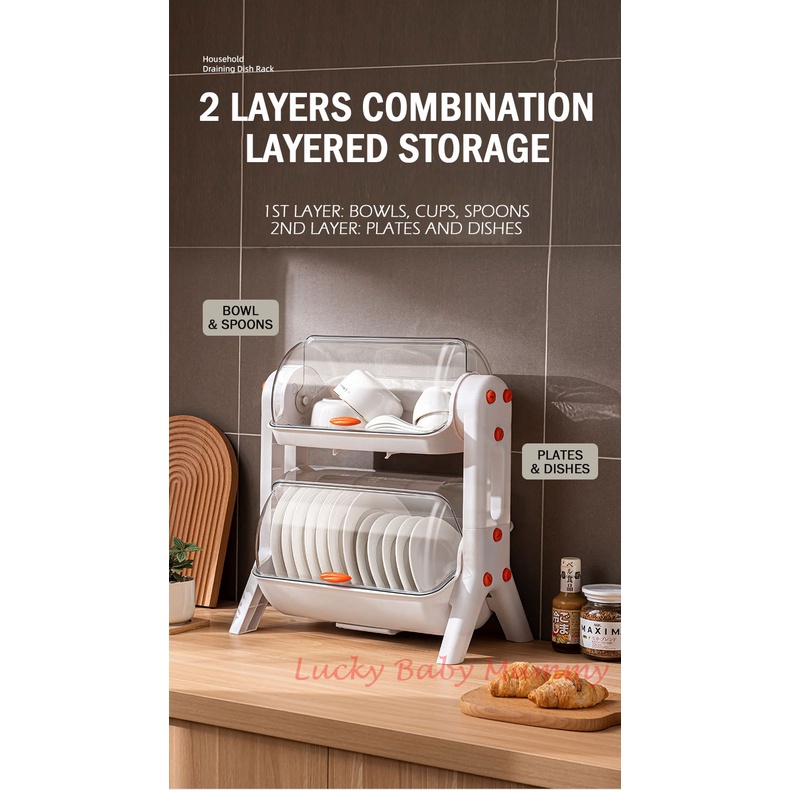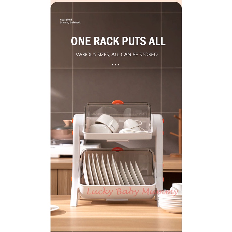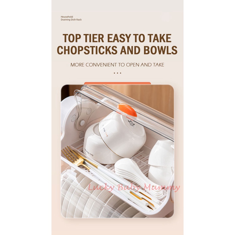 Draining Dish Rack Organizer Kitchen Storage with Cover and Drainer Utensil Cutlery Dishrack Local Stock