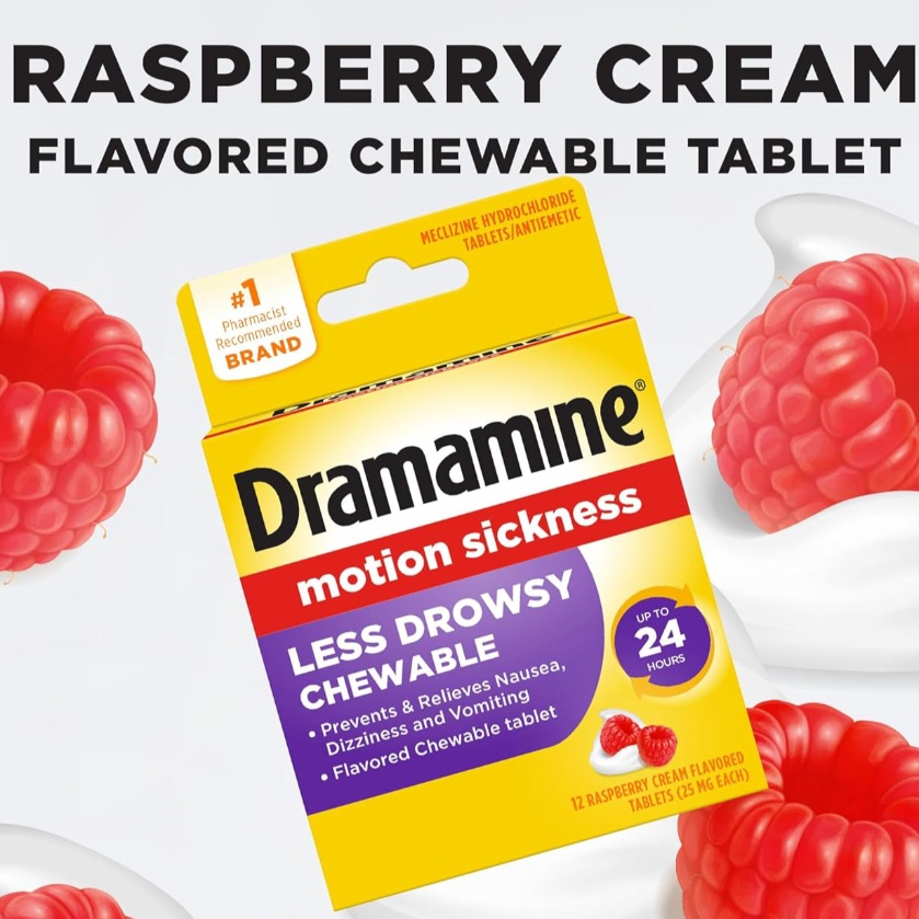 Dramamine Chewable Less Drowsy Motion Sickness, 12 Count