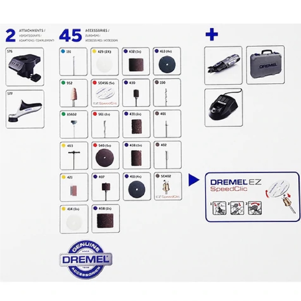 Dremel 8220 ( 8220-2/45 ) 1 X 12V Cordless Rotary Tool With Flexible Shaft & 45PC Accessories Bundle