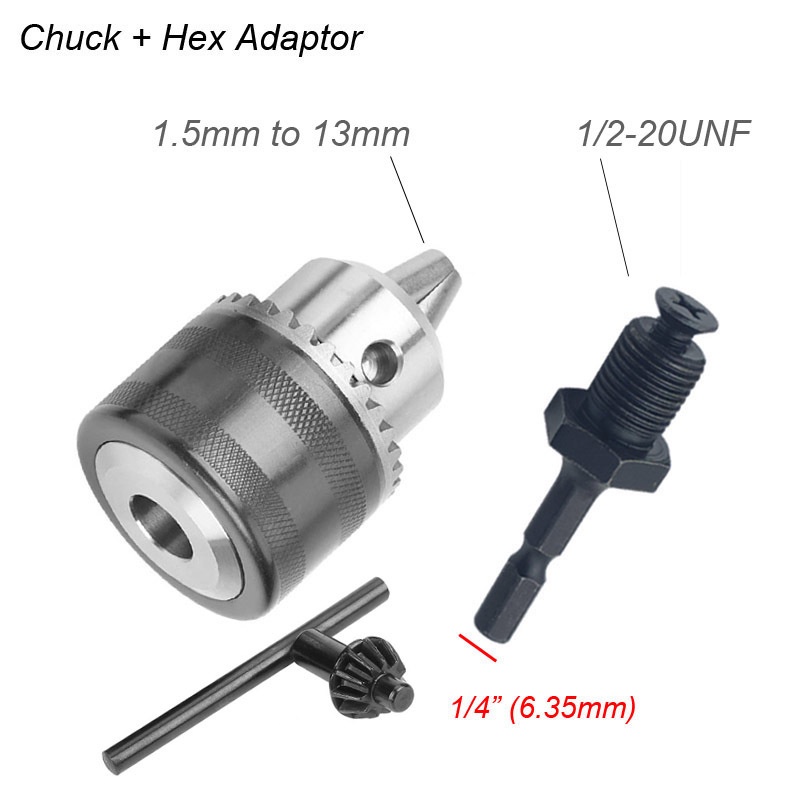 Drilling Chuck Quick Change Converter 1/2"-20UNF Key Chuck Thread Adapter SDS 1/4" Hex Impact Driver Wrench Drill Bit Adapter 1.5-13mm Claming Range