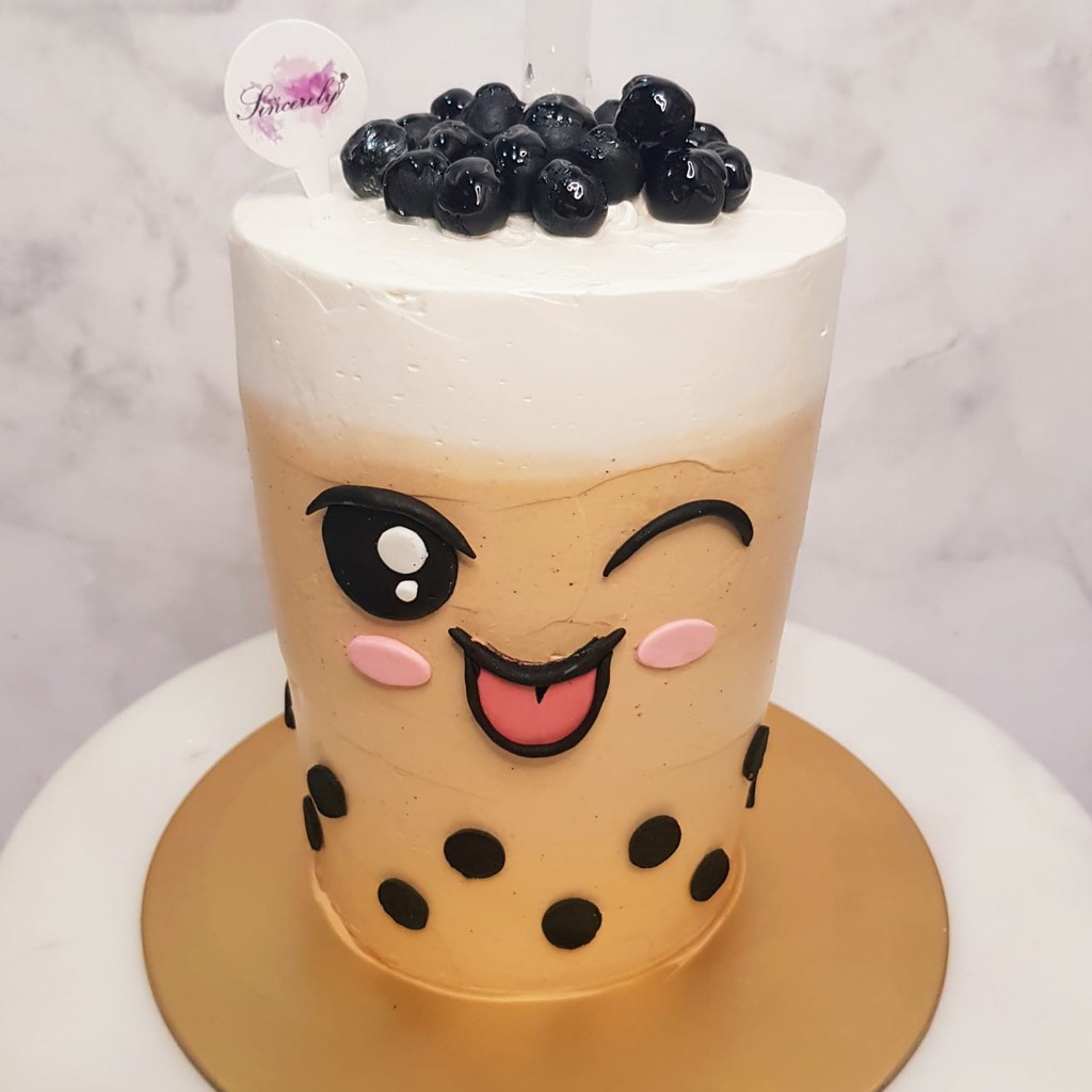 Drinkable Bubble Tea Cute Face Cake Design 8