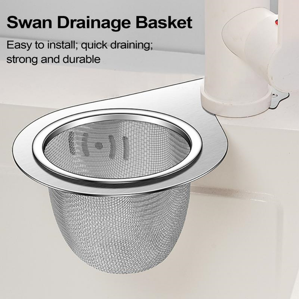 Dry And Wet Separation Sink Drain Basket Stainless Steel Drain Water Basket Drain Rack Swan Shape Kitchen Basin Organizer