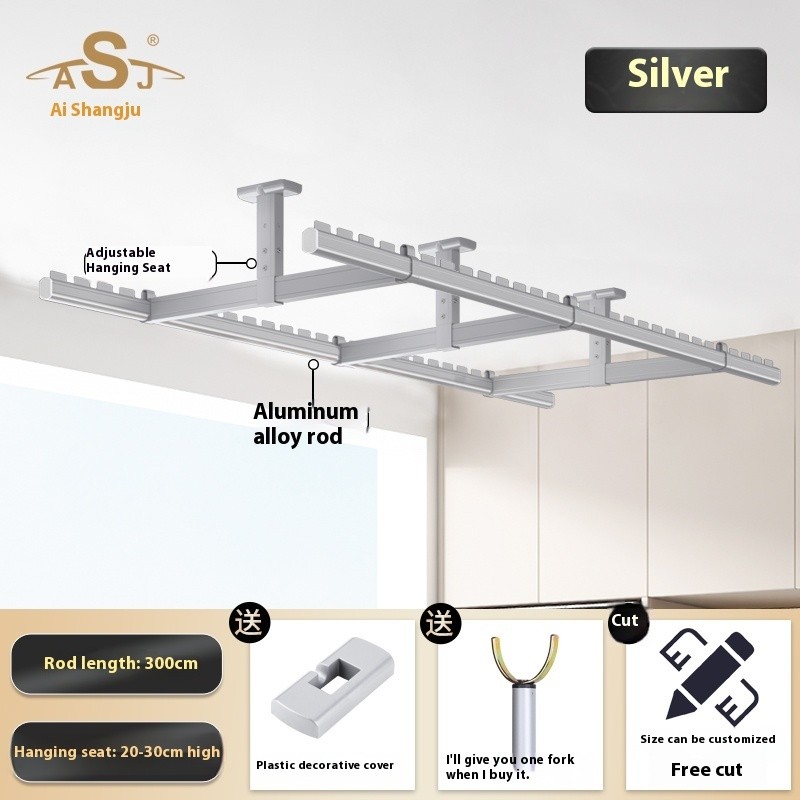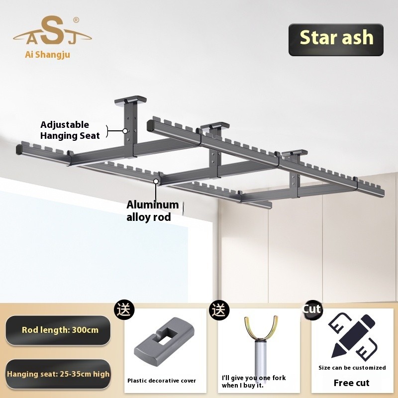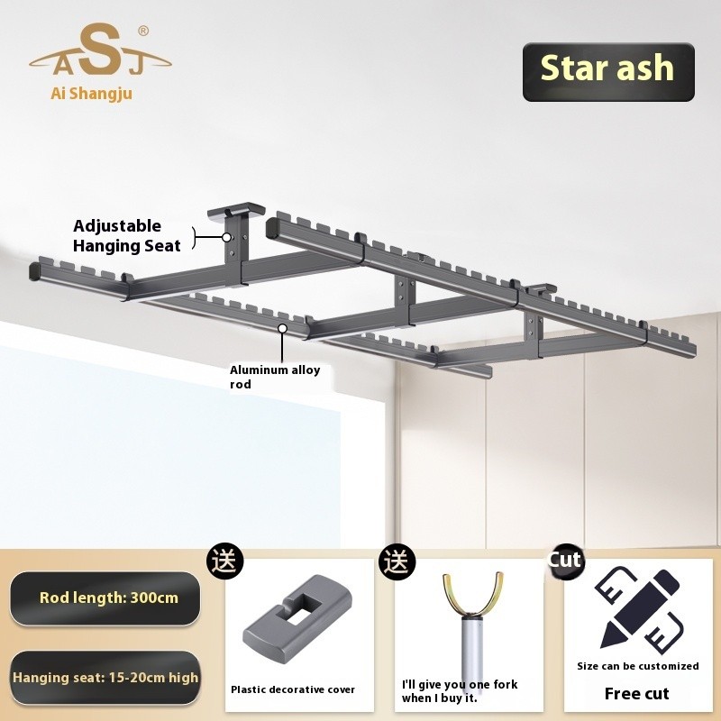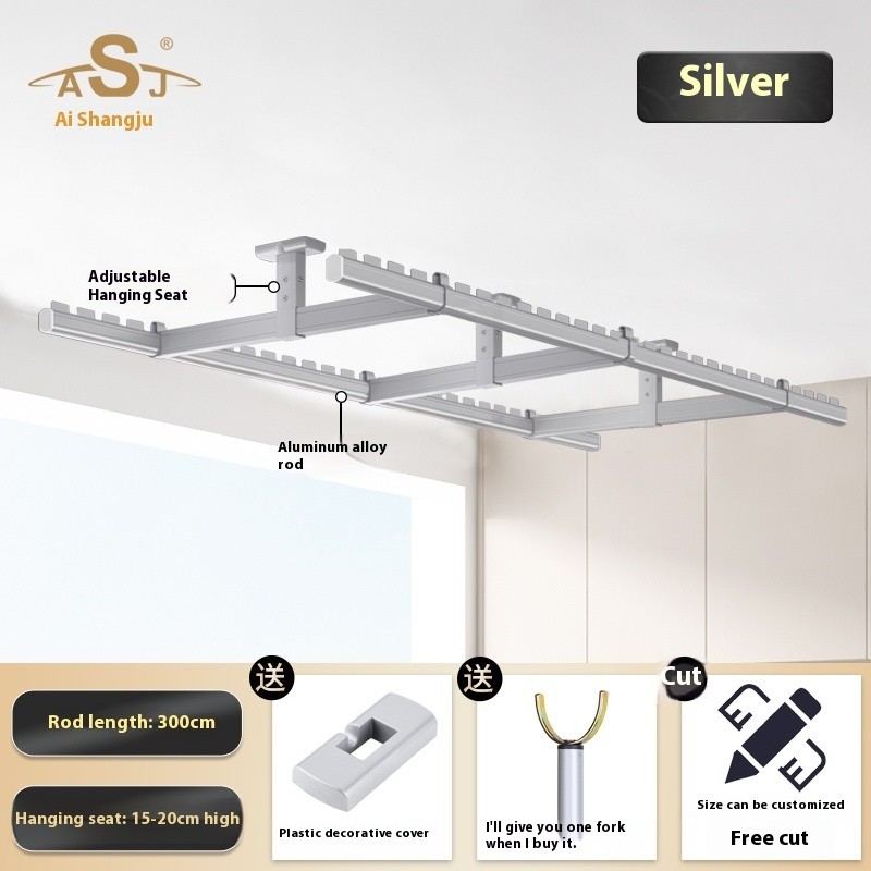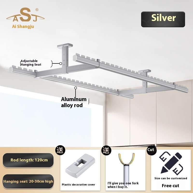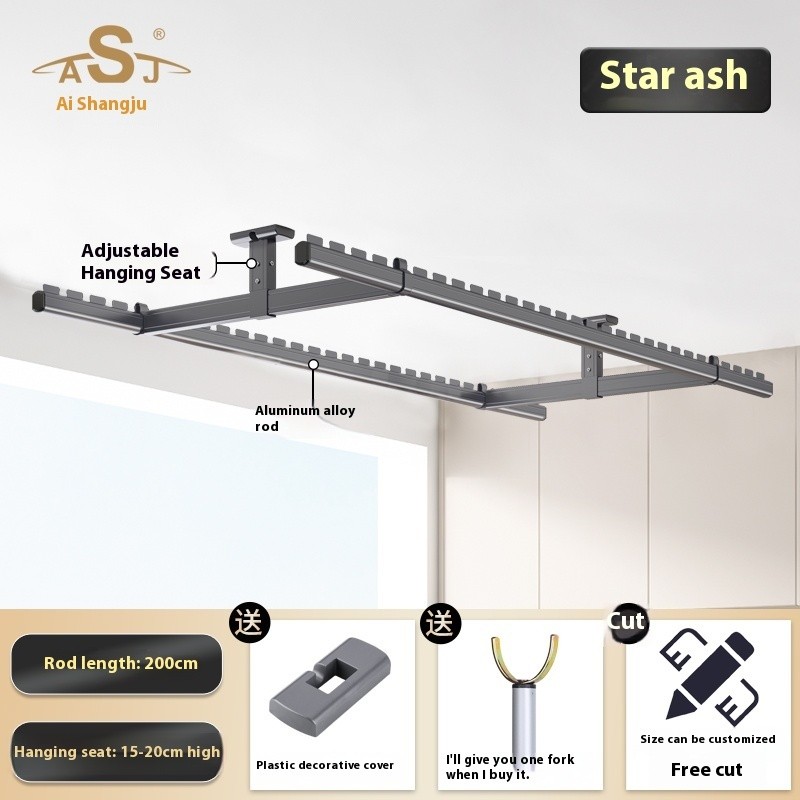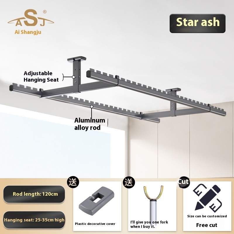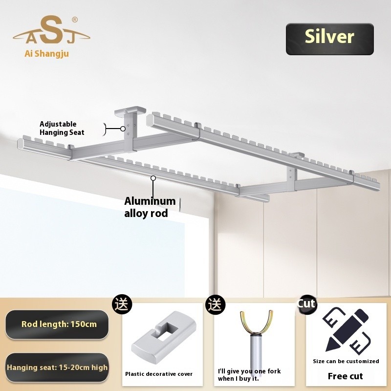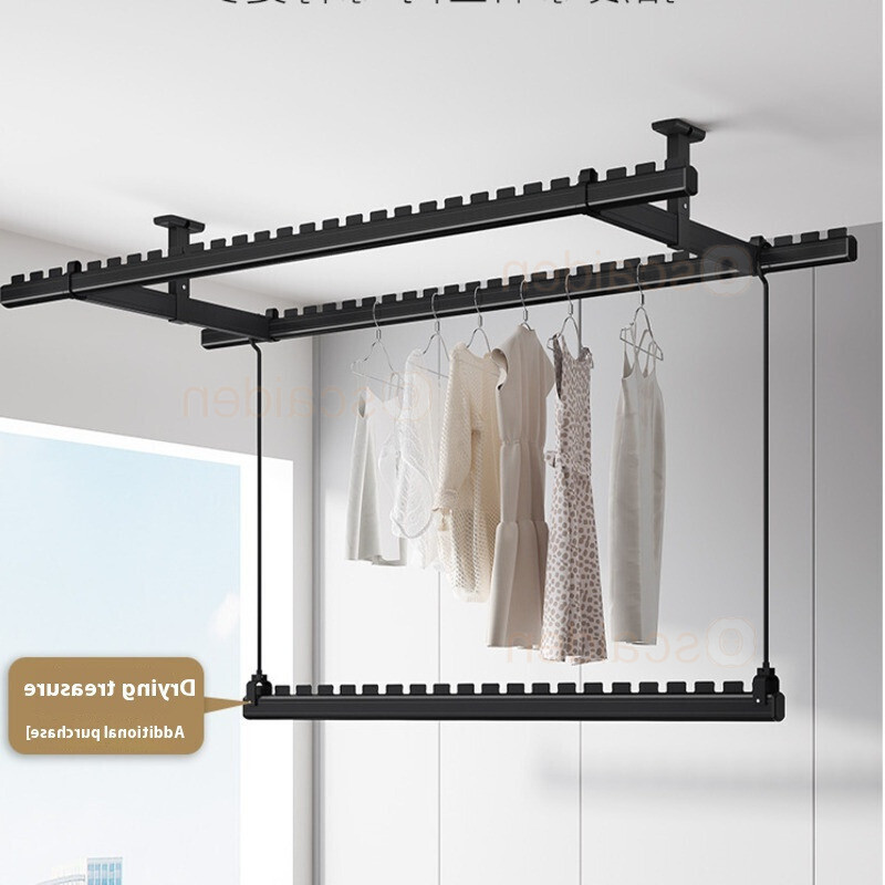 Drying Rack Clothes Rack Balcony Drying Fixed Aluminum Alloy Double Pole Hanging Clothes Rack Artifact Suspended Ceiling Wall Top Mounted Drying Rack For Household Use