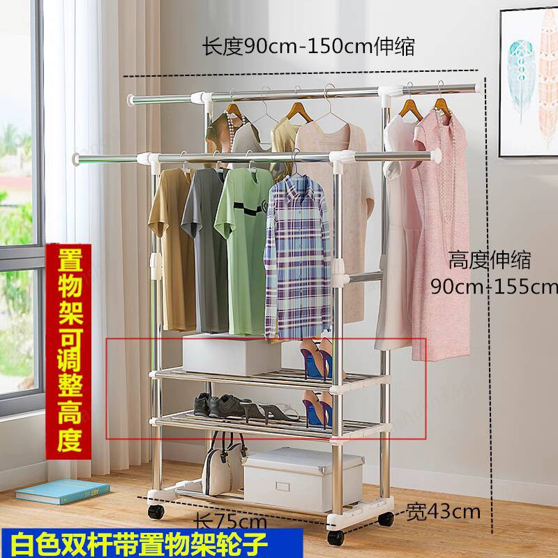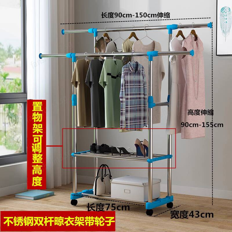 Drying Rack Indoor Clothes Drying Pole Clothes Household Telescopic Stainless Steel Bedroom Clothes Drying Balcony