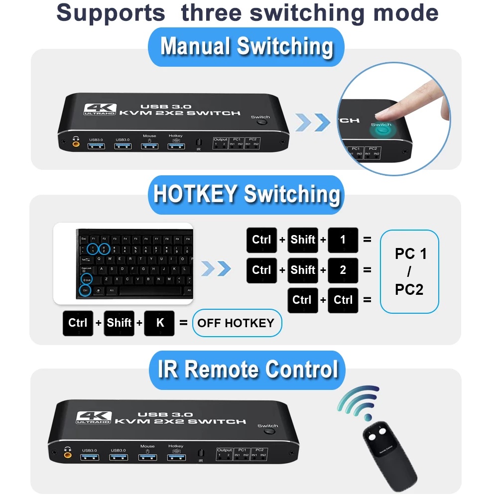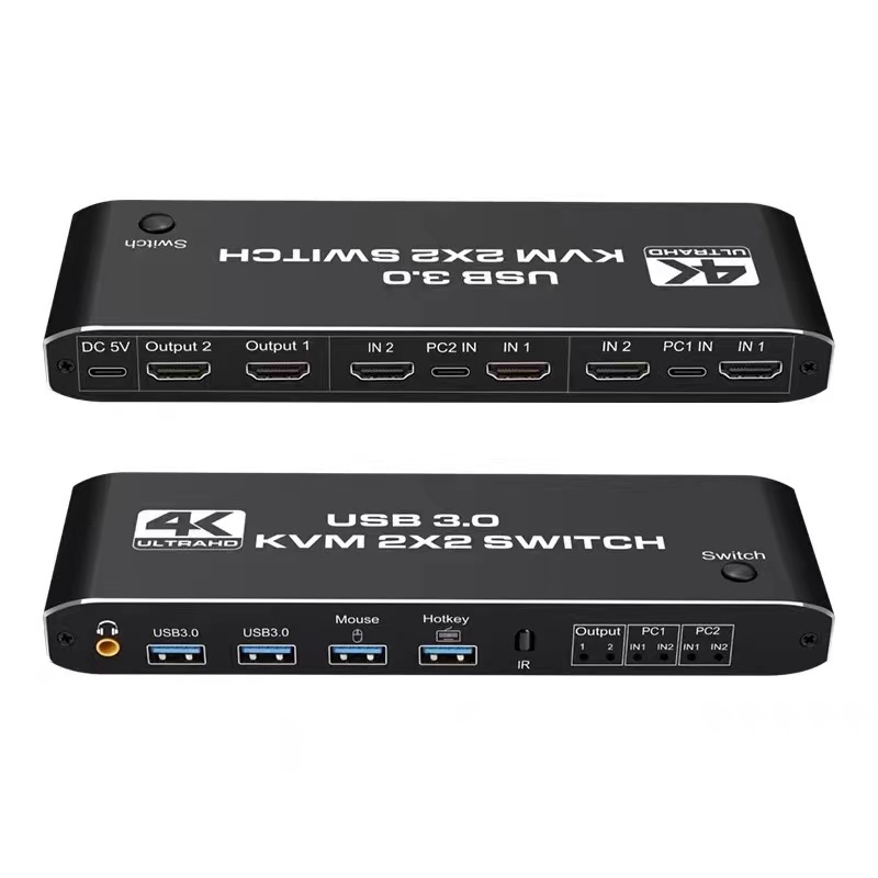 Dual Monitor 4K HDMI KVM Switcher 2x2 For 2 PC Share Monitor USB