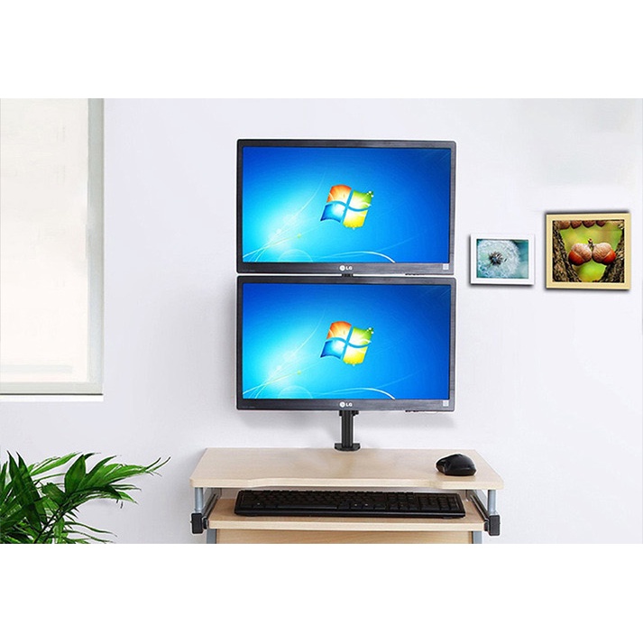 Dual Monitor Stand - Vertical Up Down Adjustable, Top Bottom Stacking for LCD/LED Screens