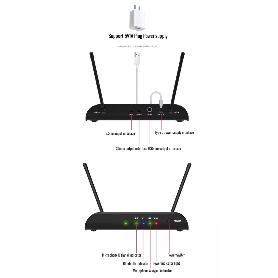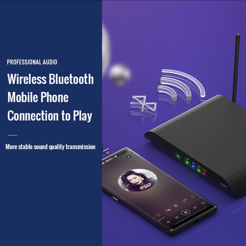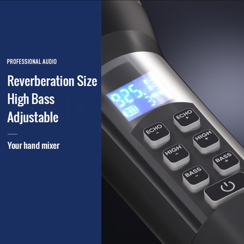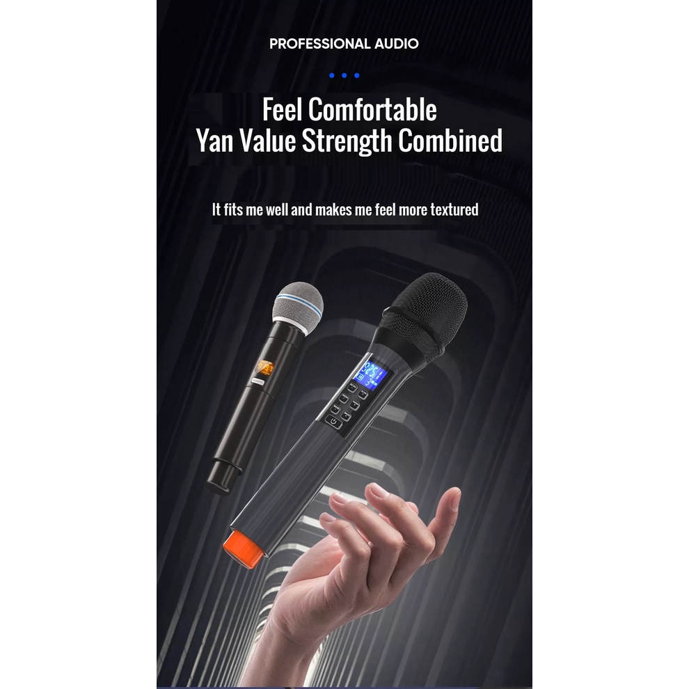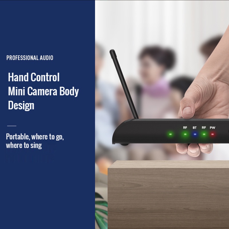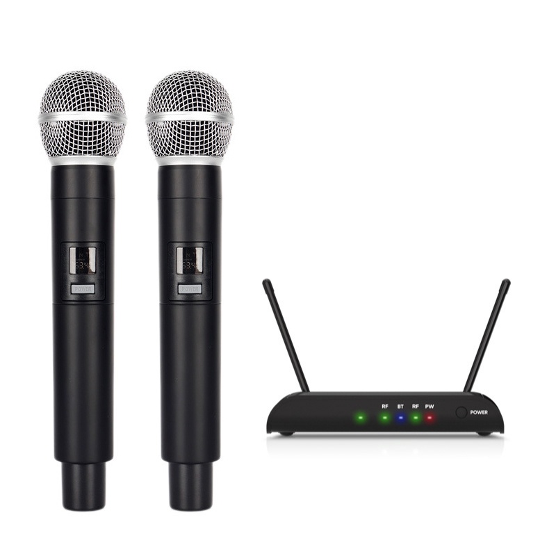 Dual UHF Wireless Microphone with Sound Card Adjustment Effect with Charging BT High Bass Reverberation for Family Karaoke Stage Performance