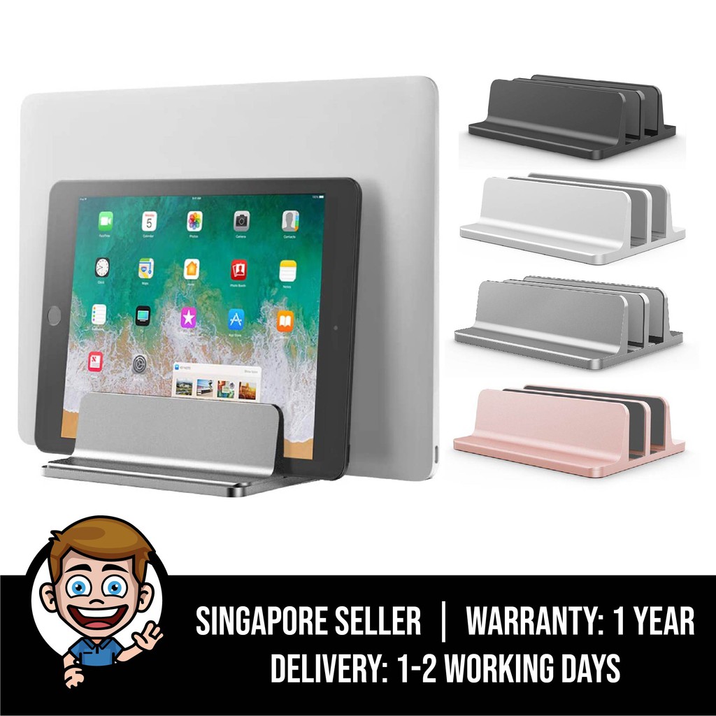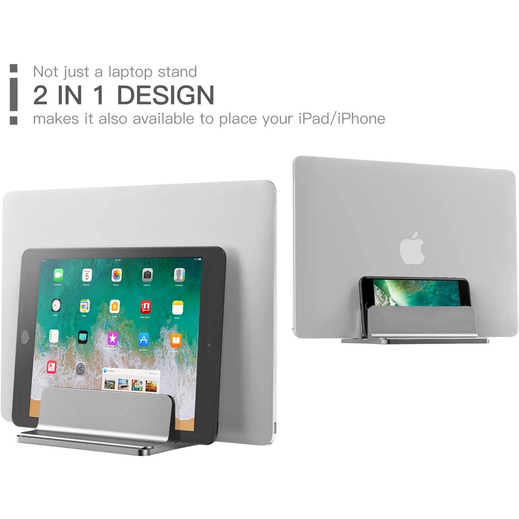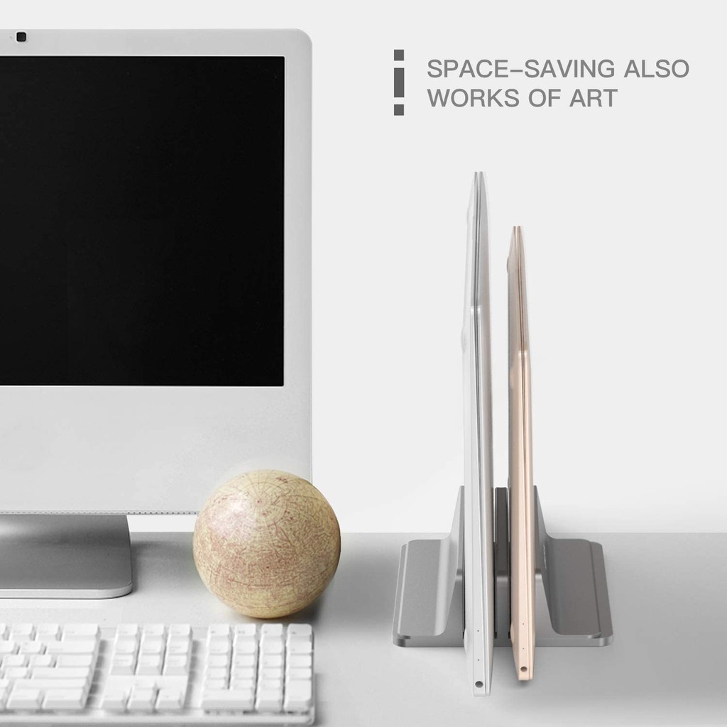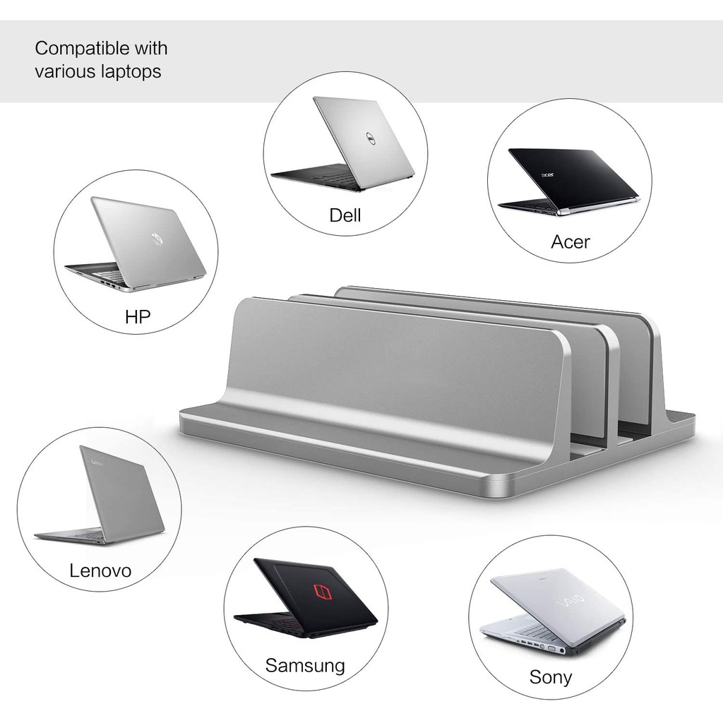 Dual Vertical Laptop Stand, Double Desktop Holder with Adjustable Dock (Up to 17.3 inch Laptops)