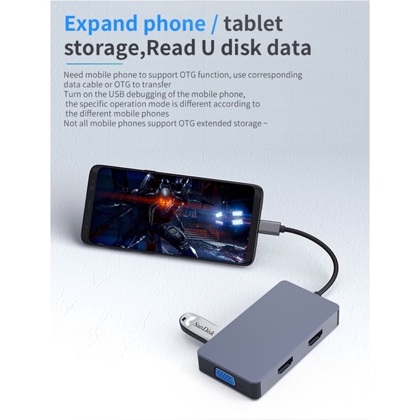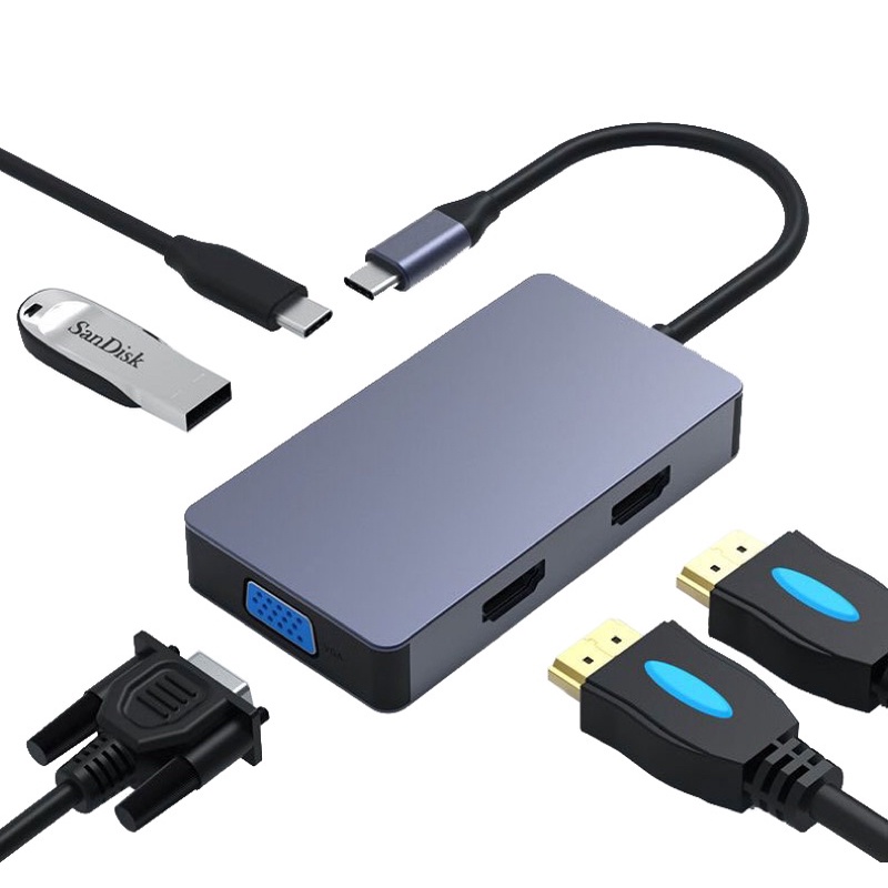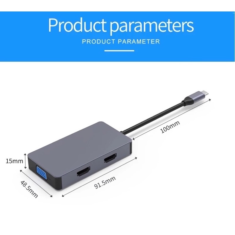 Dual hdmi and VGA type C adapter for multiple monitor screen (Extended Screen) Support all Laptops & Tablets