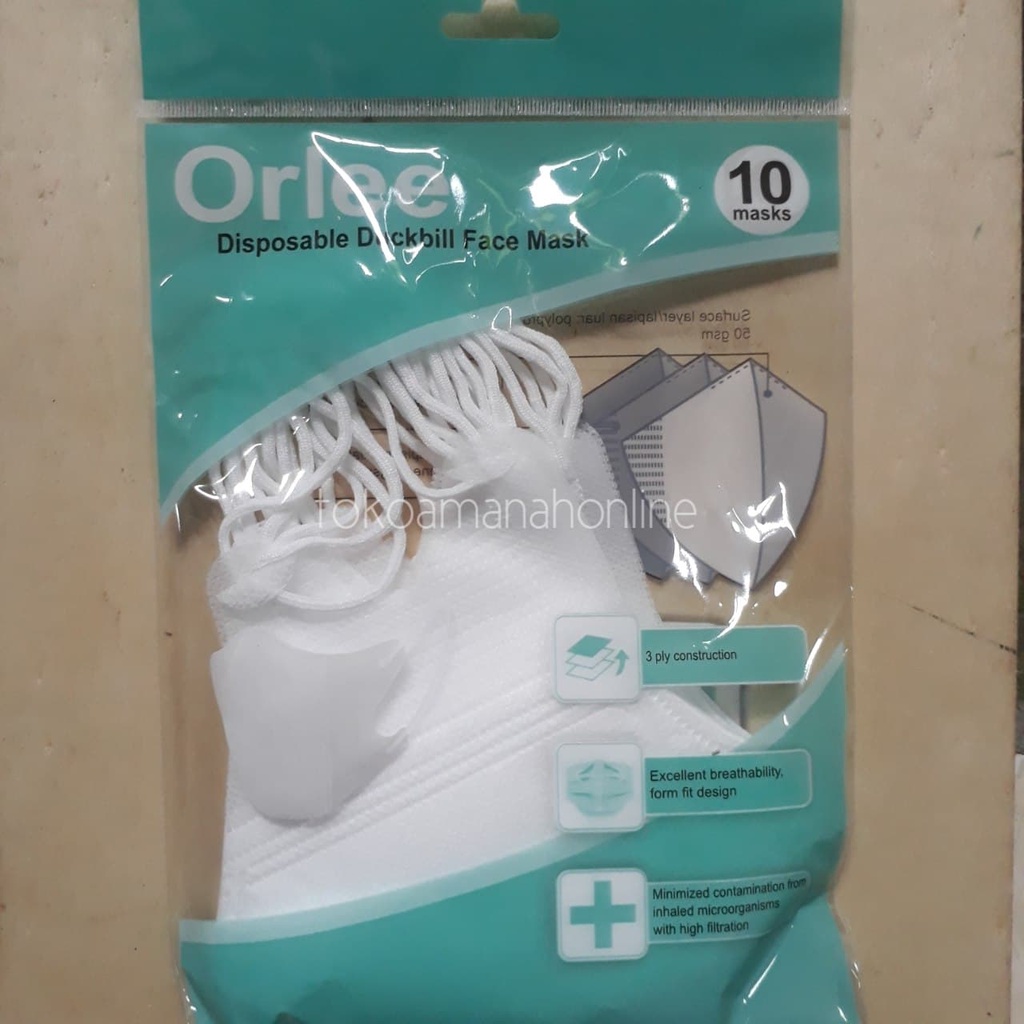 Duckbill ORLEE CANTOL MASK NON HIJAB EARLOOP DUCK BILL HEADLOOP PACK CONTENTS 10 KEMENKES DUCK BILL EMBOSED ORIGINAL