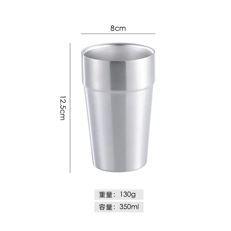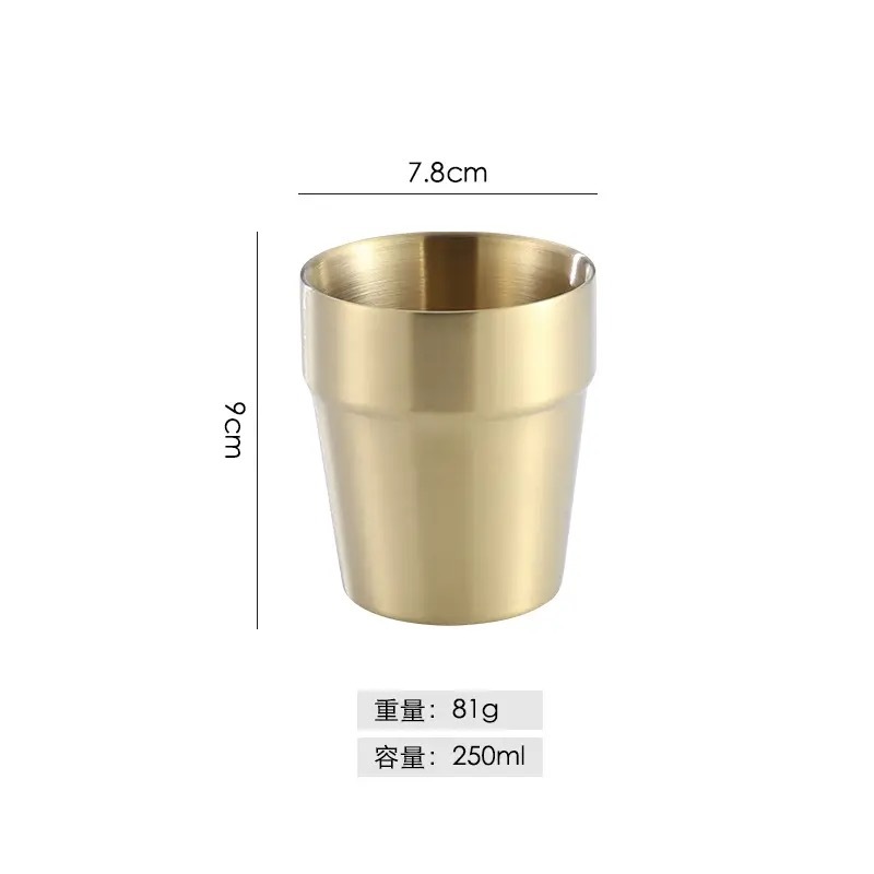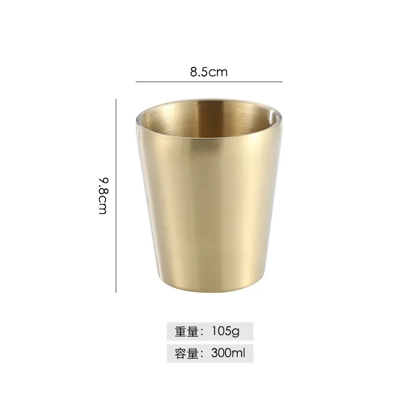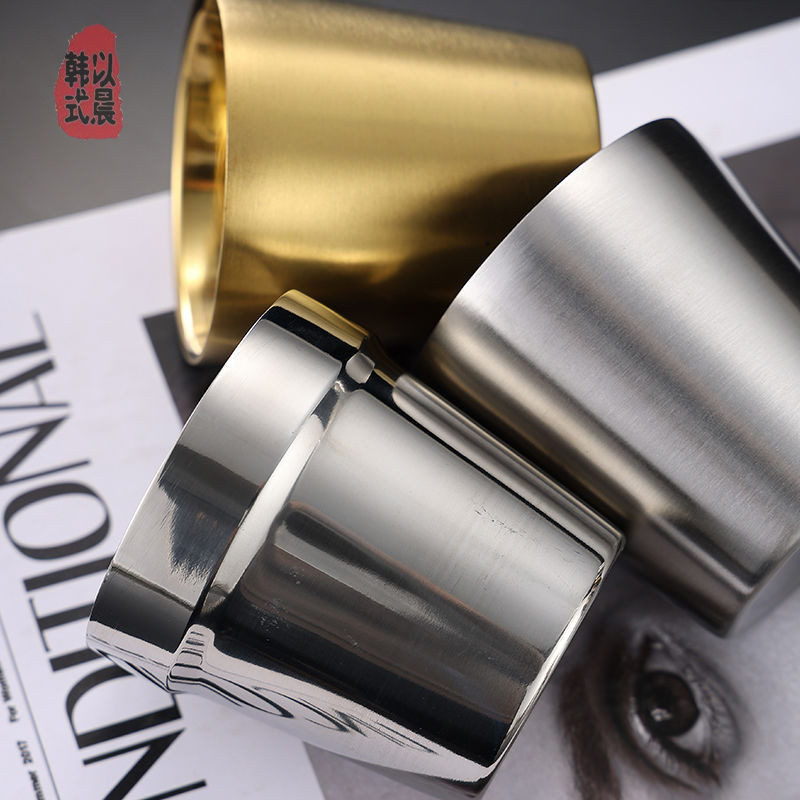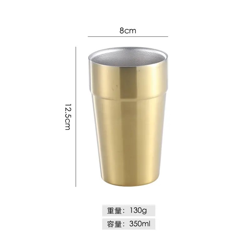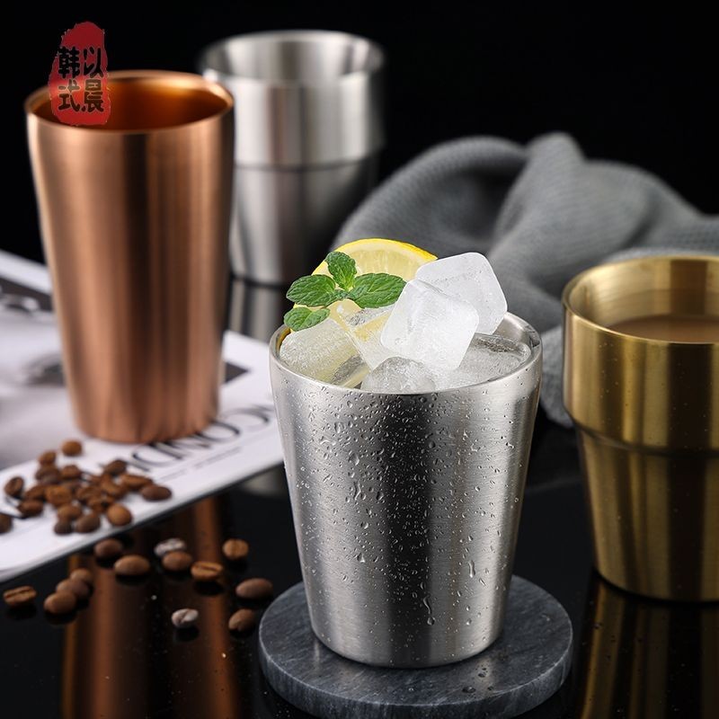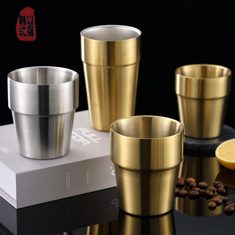 Oukeai Korean Style 304 Stainless Steel Beer Cup Double-Layer Shock-resistant Cup Tea Cup Barbecue Shop Drinking Cup Golden Drink Cup