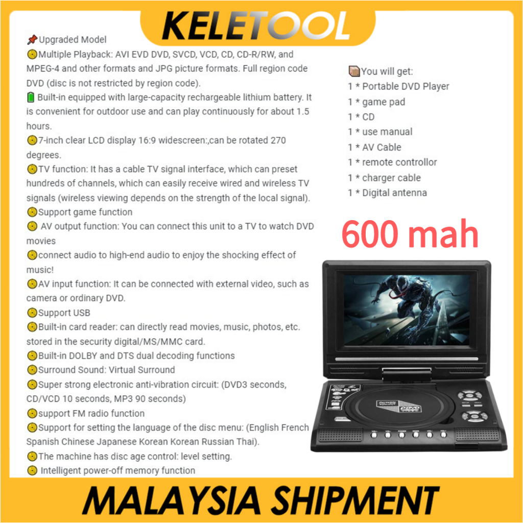 9.8inch DVD Player portable with screen Cd Player with speaker vcd/dvd player discman Cd player video with speaker MP4