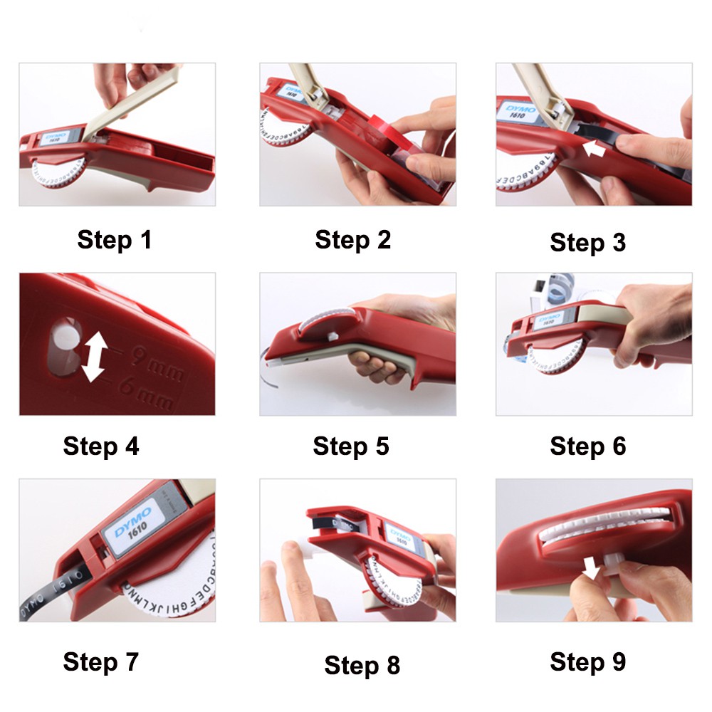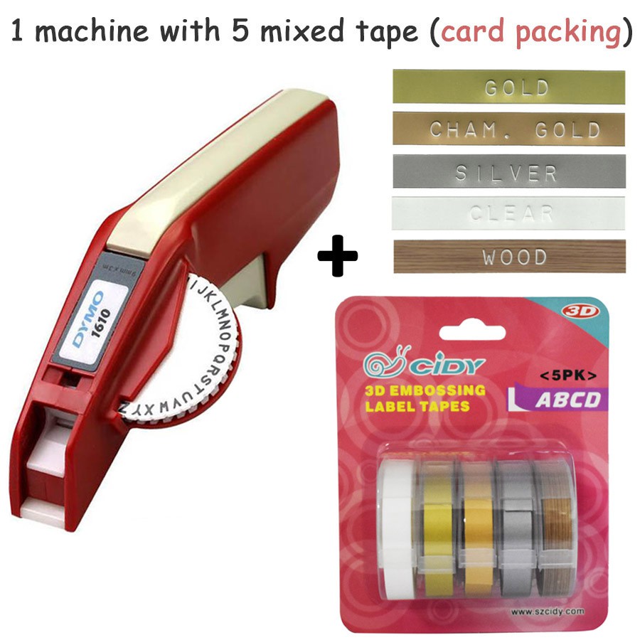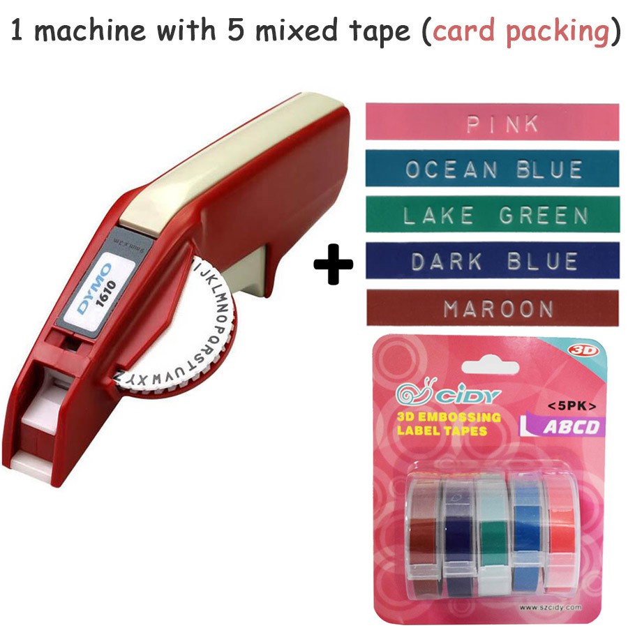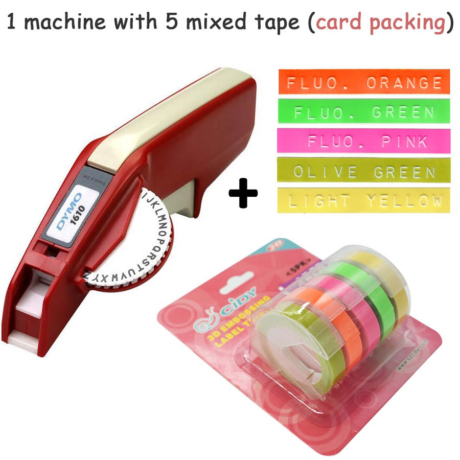 Dymo 1610 Portable Manual Label Maker machine typewriter Label Printer with Plastic 9mm Refill Tapes 3D Embossing tape