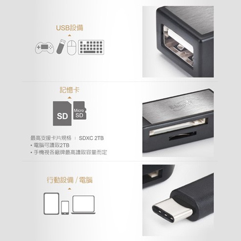 E-books T37 Type C Multifunctional Composite OTG Card Reader