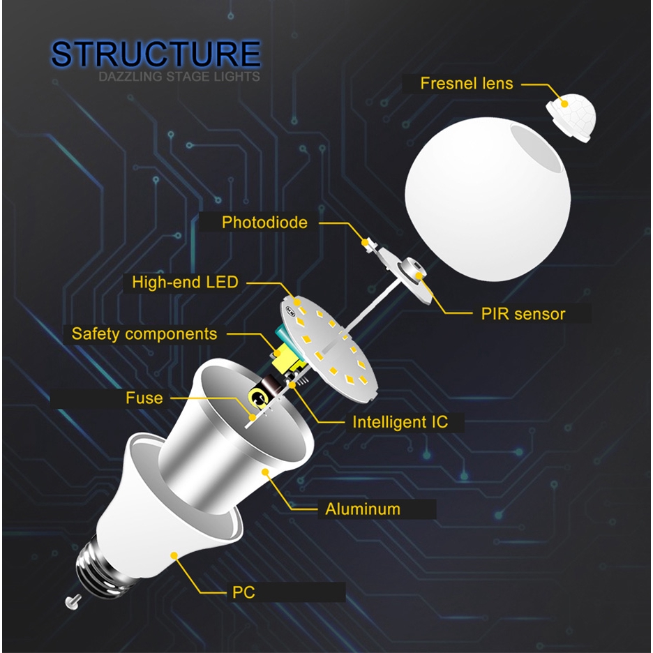 E27 Motion Sensor 15W 12W 9W 5W LED Lamp Body induction Auto turn on/off with PIR motion detection Corridor garden decorative bulbs