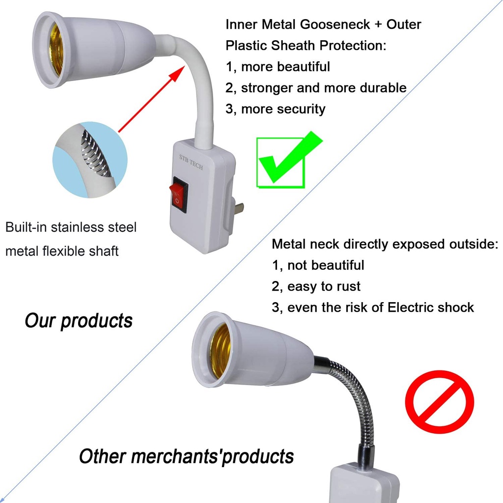E27 Screw Socket In-line Lamp Holder / 110-220V E27 Flexible Light Bulb Adapter Socket /Adjustable Socket Adapter with On/Off Switch for Plastic Direct Plug In Light Bulb
