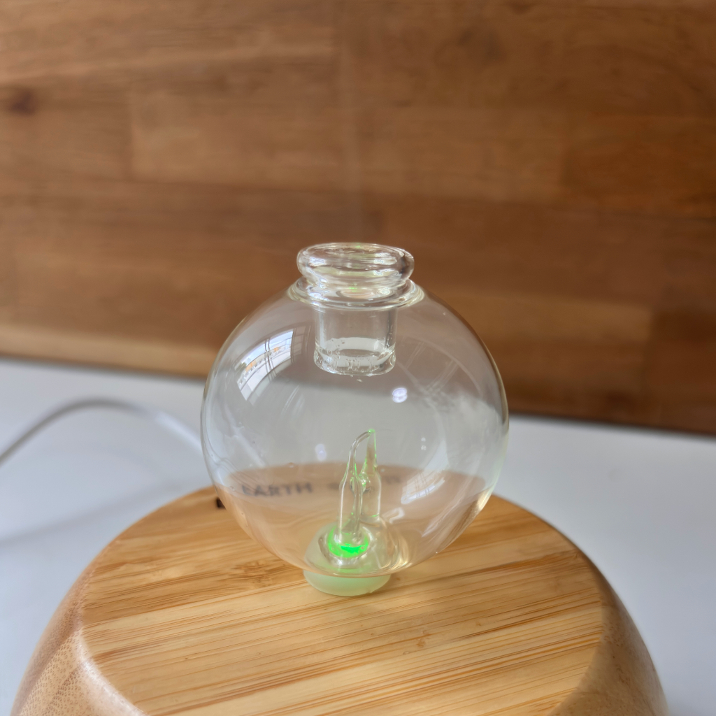 EARTH Home Nebulizing Diffuser/ Nebulizer for Pure Essential Oils, Handmade Glass, Bamboo Base with lighting