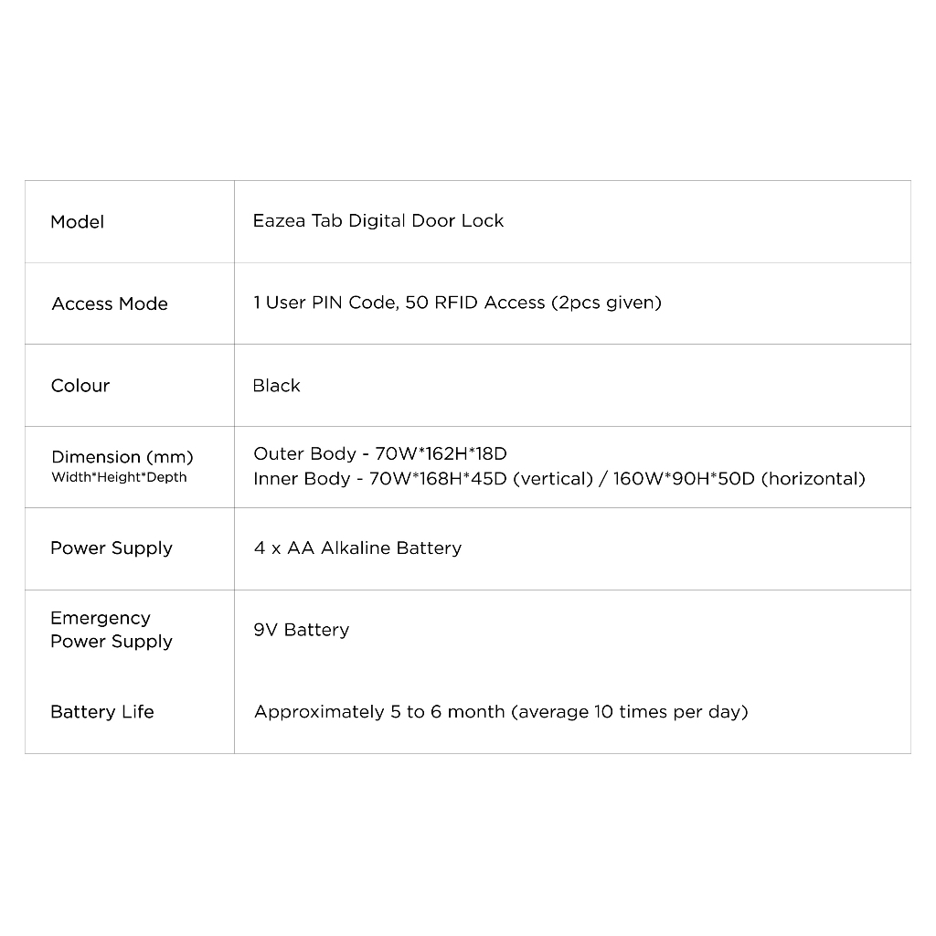 EAZEA Tab Digital Door Lock | 3 IN 1 | PIN Code, RFID Access, Wi-Fi | HDB Door, Bedroom Door, Office Door Digital Lock