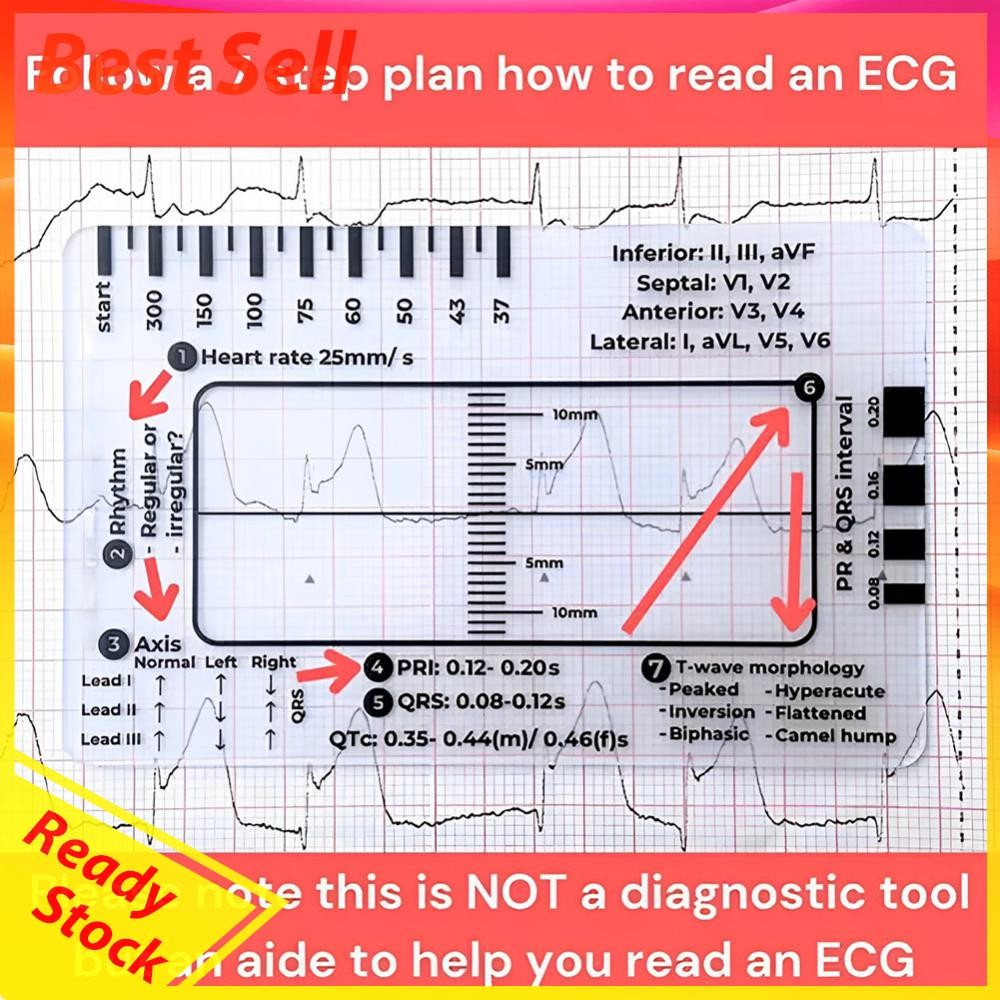 ECG 7 Step Ruler Portable ECG Measuring Card Reference Tool for ECG Observation
