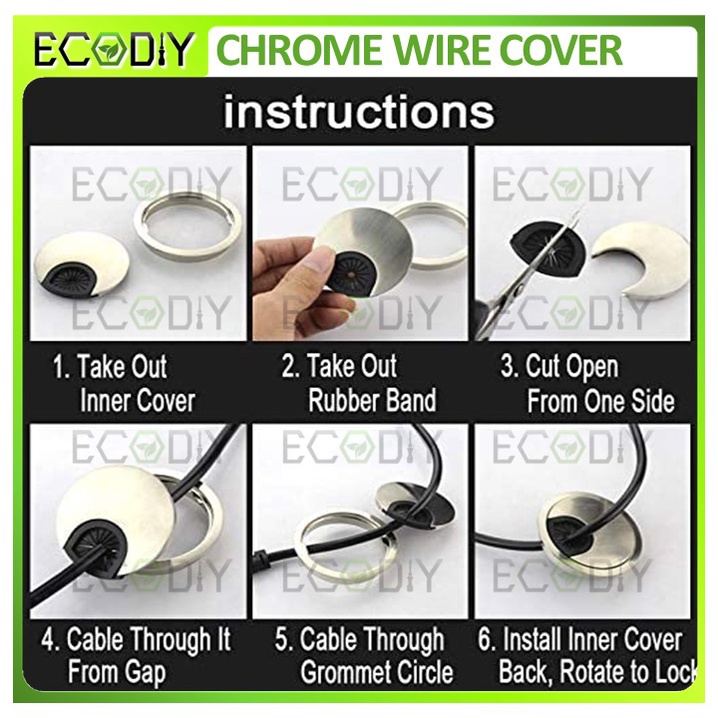 ECODIY 60mm PVC Chrome Wire Cable End Cap Round Desk Grommet Cover for Wire Organizer Cable Hole Cover Computer Cover
