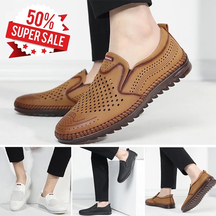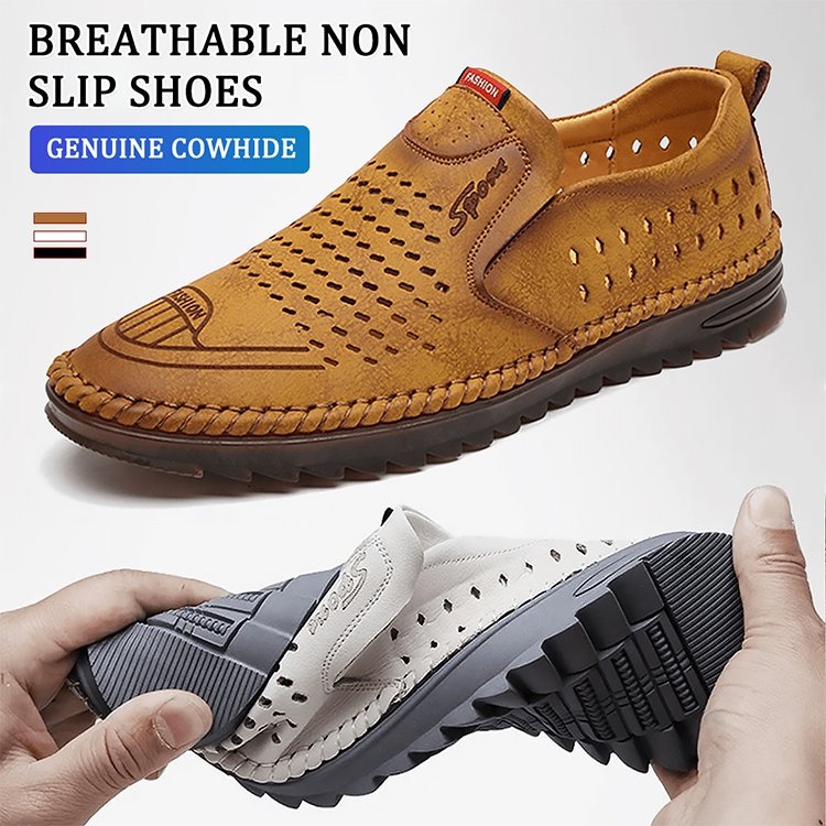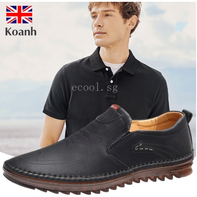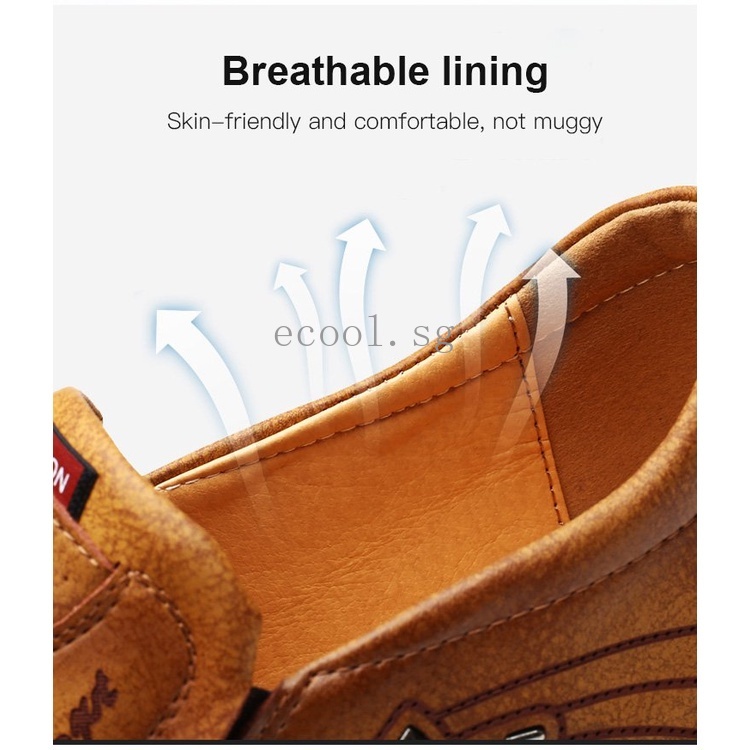 ECOOL Men's Handmade Casual Leather Shoes Slip-on Shoes Soft Sole Breathable Men's Shoes leather shoes men
