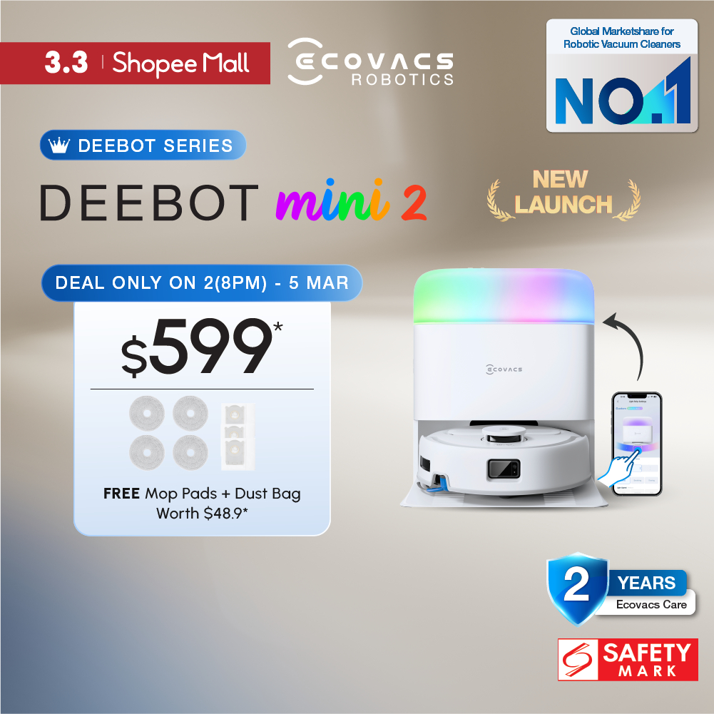[2026 NEW] ECOVACS DEEBOT Mini 2 Robot Vacuum Cleaner | 10000 PA | 63°C Hot Air Drying | Pet Hair Anti-Tangle