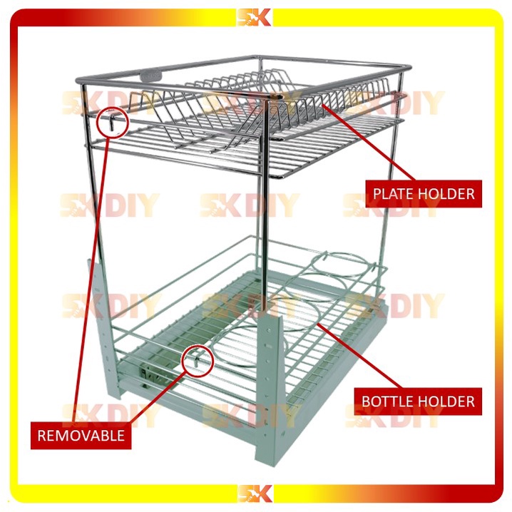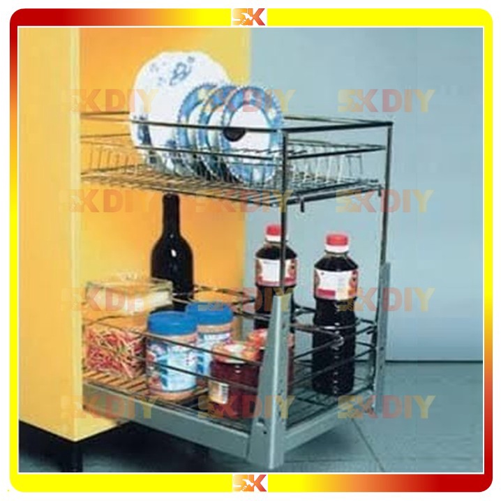 ECOWARE 350mm Multifunction Two Layers Pull Out Basket PTJ-010F Kitchen Storage Kitchen Basket Dish Rack Kitchen Rack