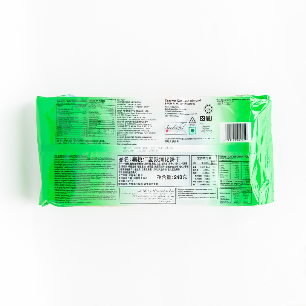 EGO Oat Digestive Crackers - Almond Flavour 240g (Halal)