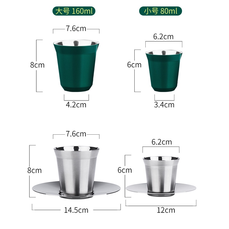 EISHO Nespresso Mug Coffee Mini Cup 304 Stainless Steel Portable Nescafe Cups Garrafa Termica tumblerful 80ML 160ML