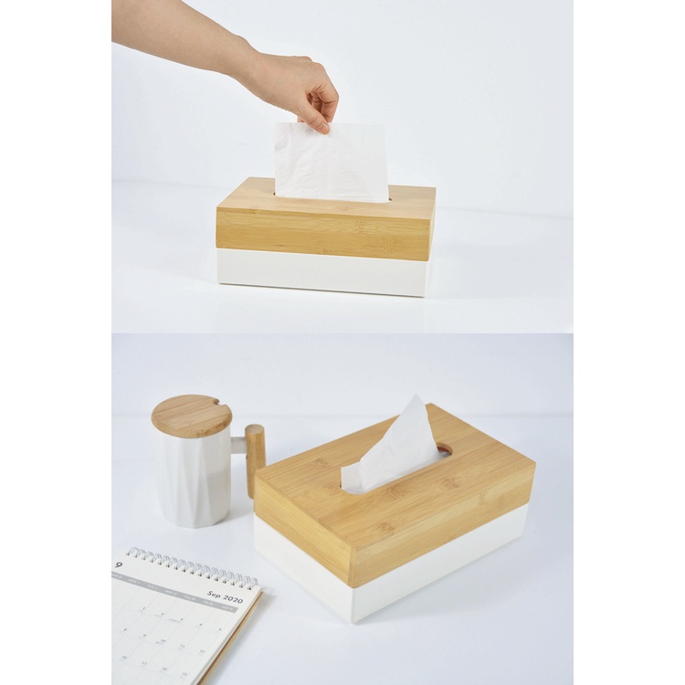 EISHO Tissue Box Japanese Style Desktop Bamboo Tissue Boxs paper holder Storage Household Living Room Simple Napkin Can Be Set logo