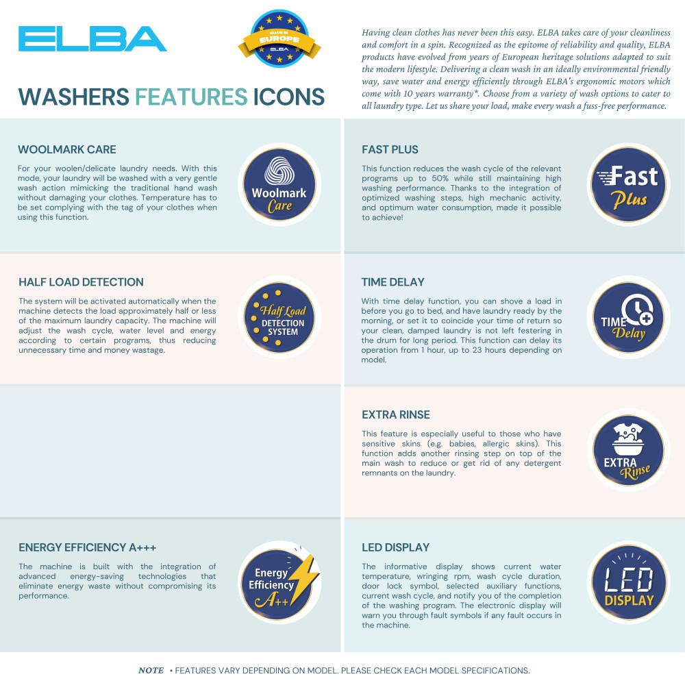 ELBA EWF 1077 A 7KG FRONT LOAD WASHING MACHINE - 2 YEARS WARRANTY