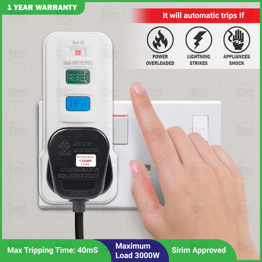 ELCB TRIPS & SOCKET TESTER TEST POWER SUPPLY SAFETY SM-ES1630 13 AMP 13A 300mA PENGUJI ELECTRIC ELETRIK ADAPTOR RCD RCCB