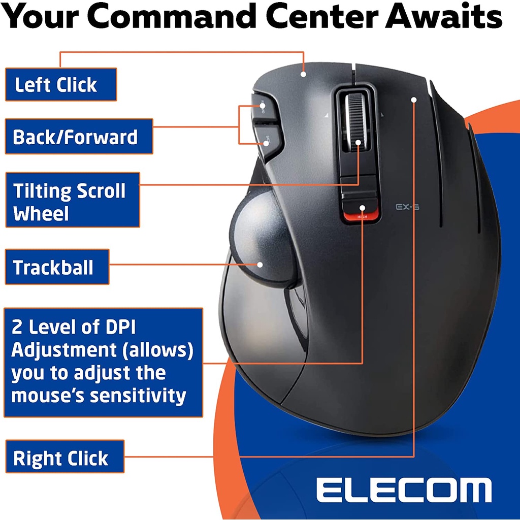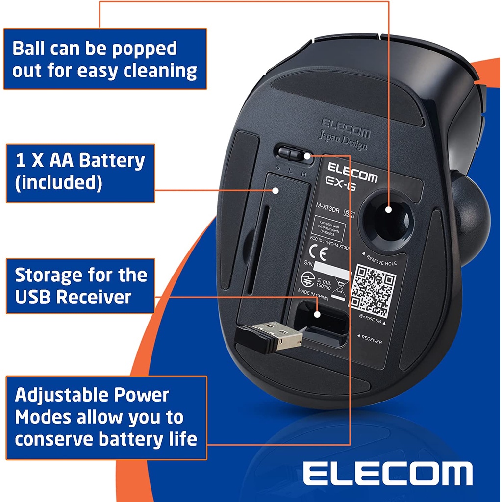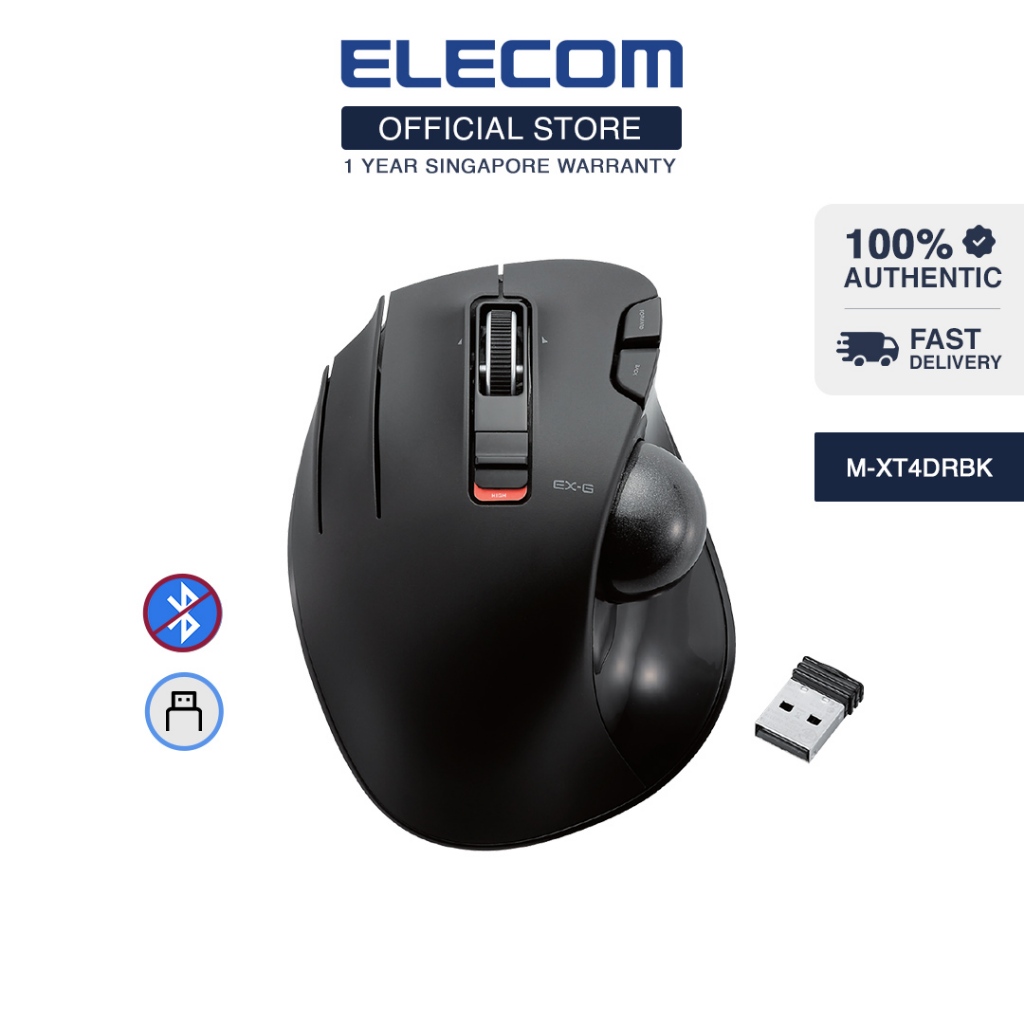 ELECOM EX-G Trackball Mouse/2.4GHz Wireless/Thumb Control/Ergonomic/6 Buttons / M-XT3/4DRBK