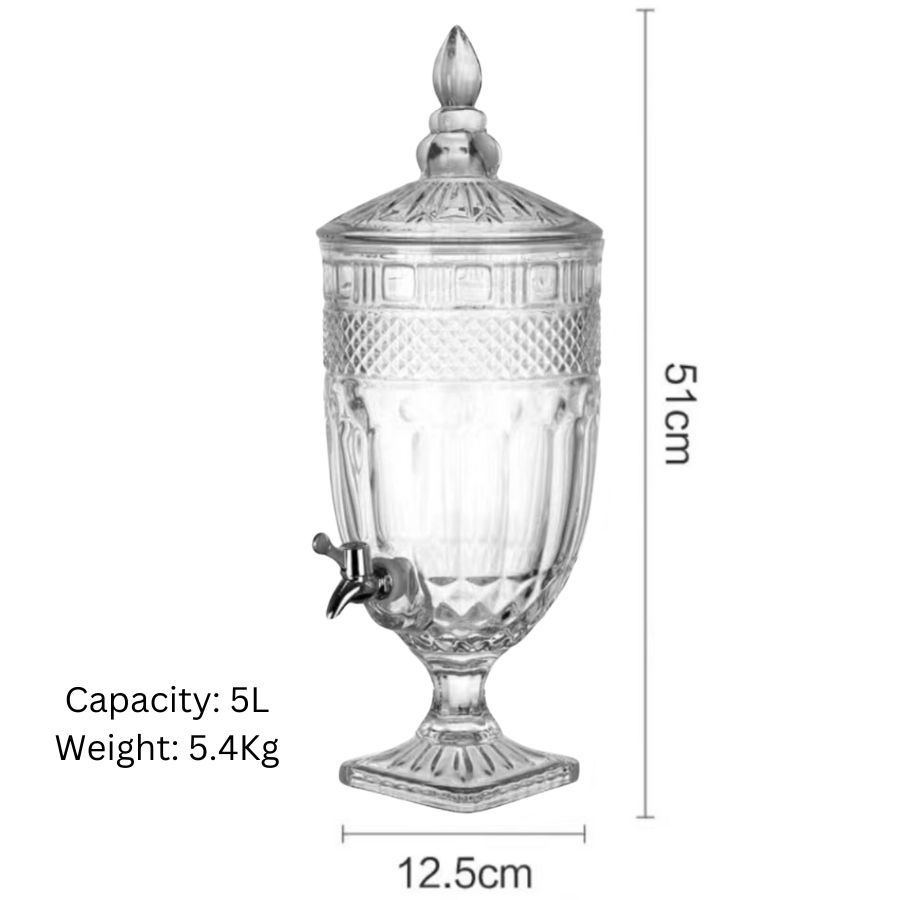 EMBOSSED CRYSTAL CLEAR GLASS BEVERAGE DISPENSER (CLASSIC - 5L)
