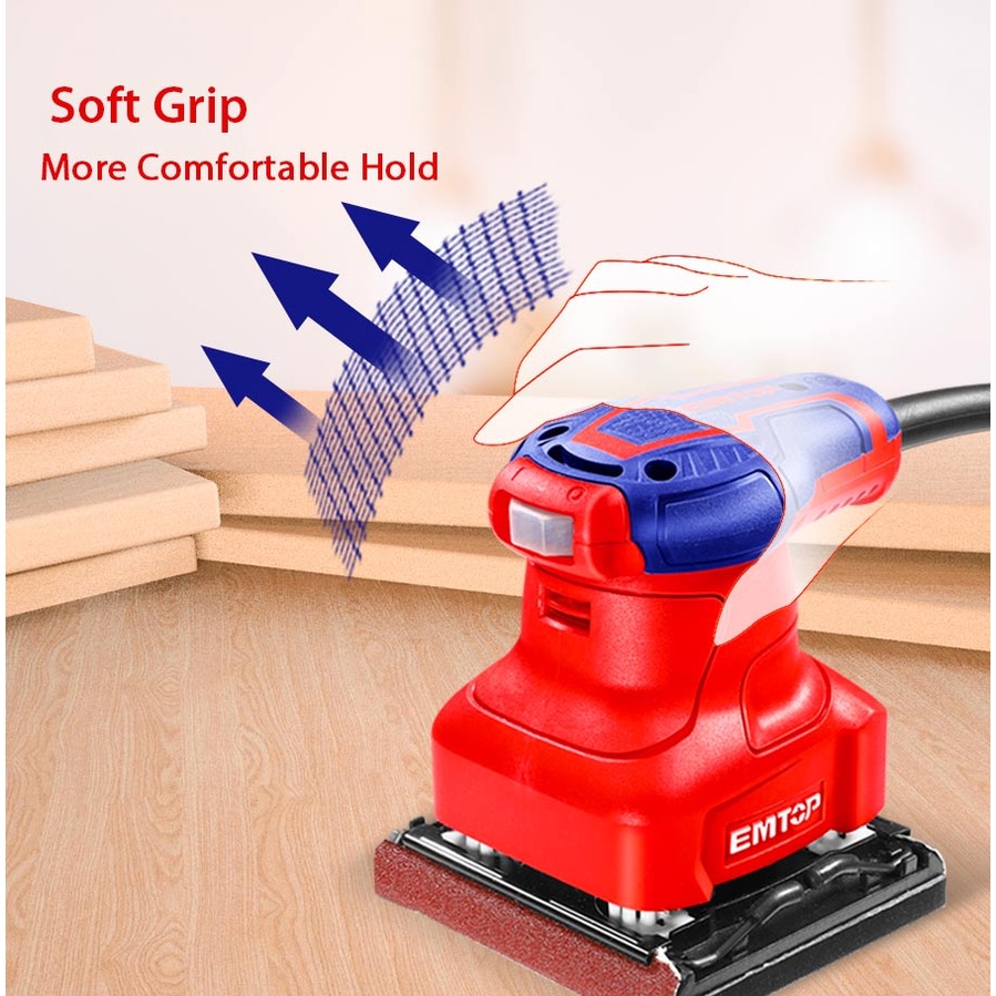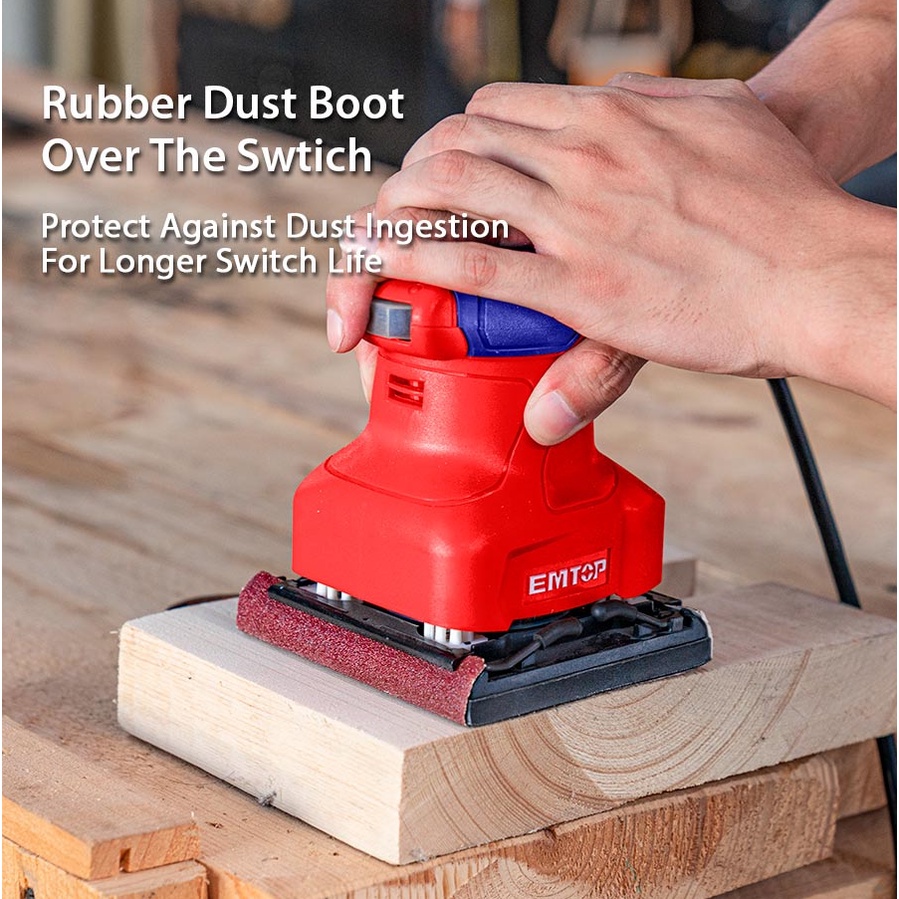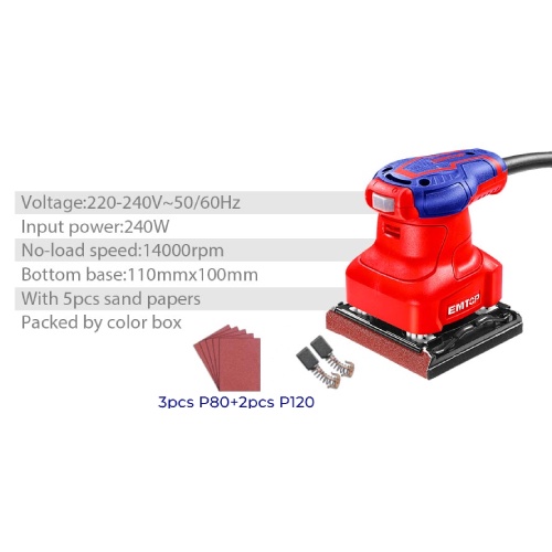 EMTOP 240W Electric Corded Palm Sander Detail Sanding Machine Woodworking Tools for Wood With 5pcs Sand Papers EFSR2401