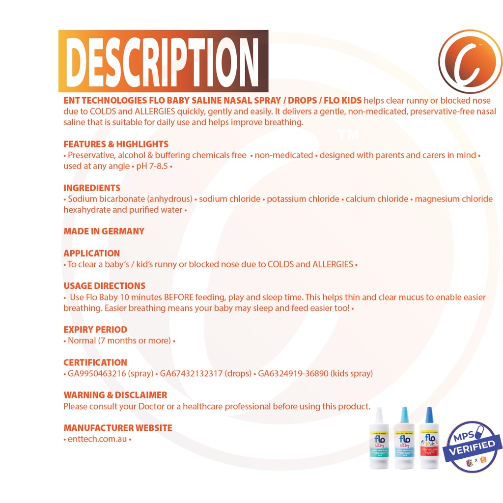 ENT TECHNOLOGIES Flo Baby Saline Nasal Drops/Spray 15ML