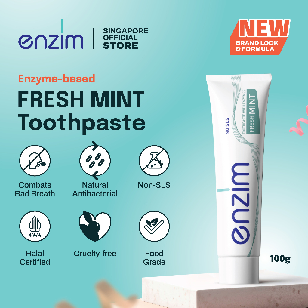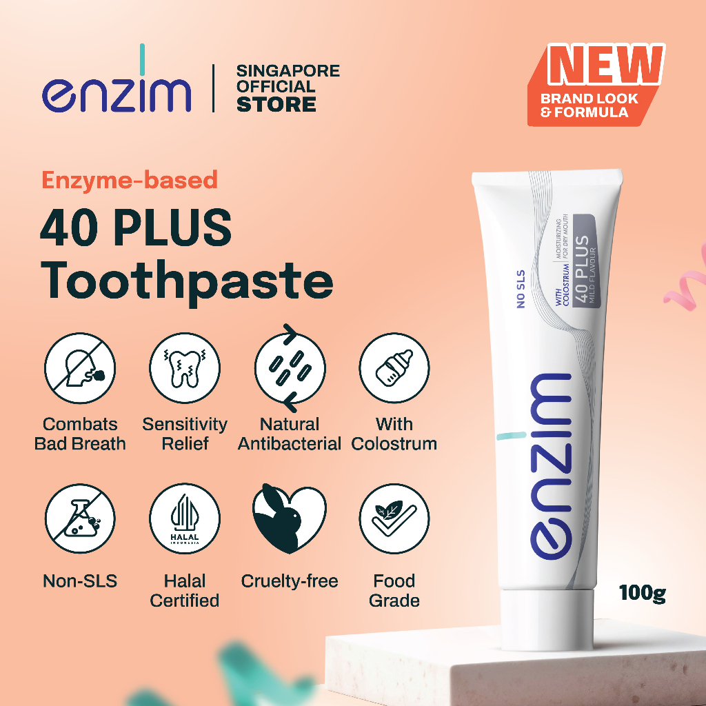 ENZIM 40 Plus + Fresh Mint Toothpaste for Gum Care and Sensitive Teeth, SLS Free, Halal [2Pack]