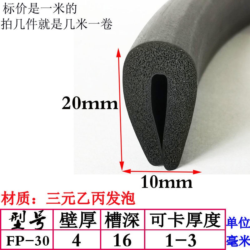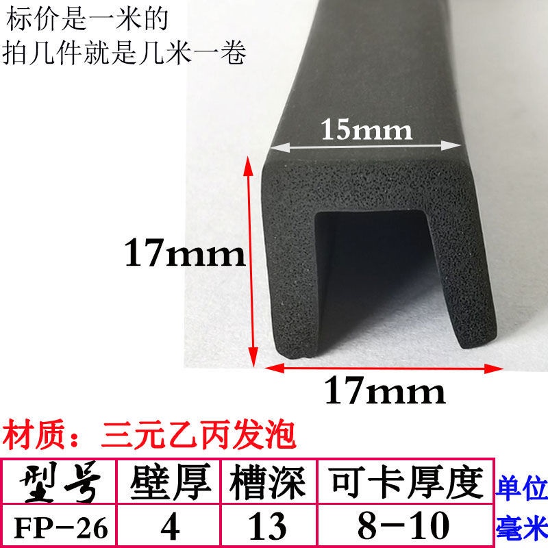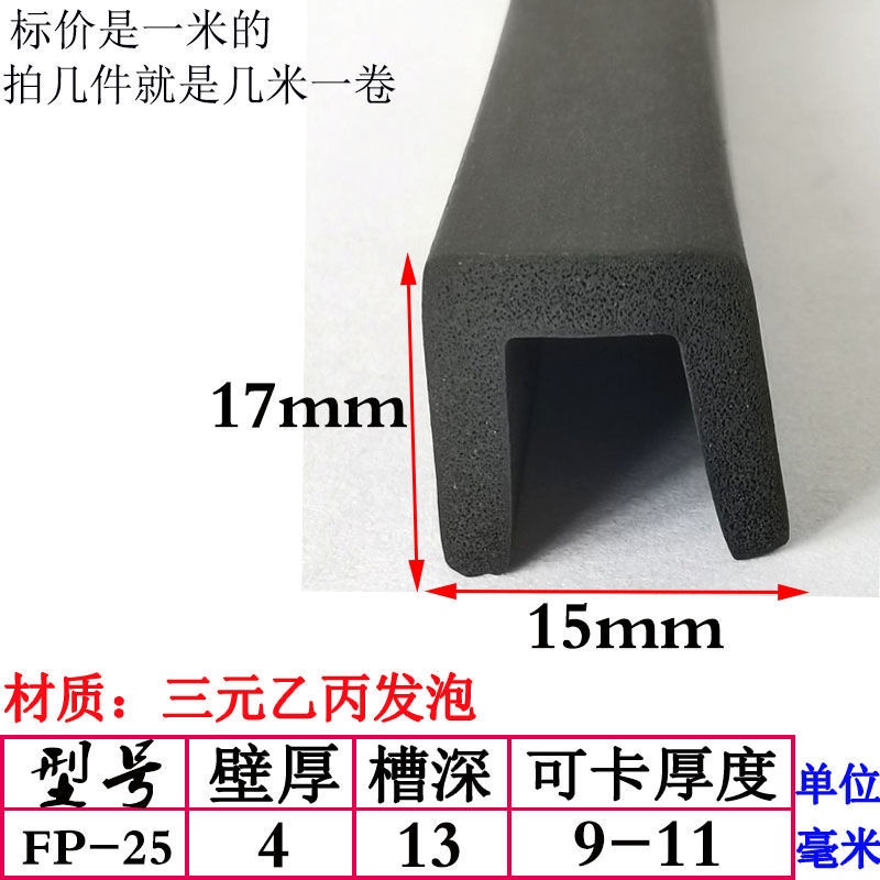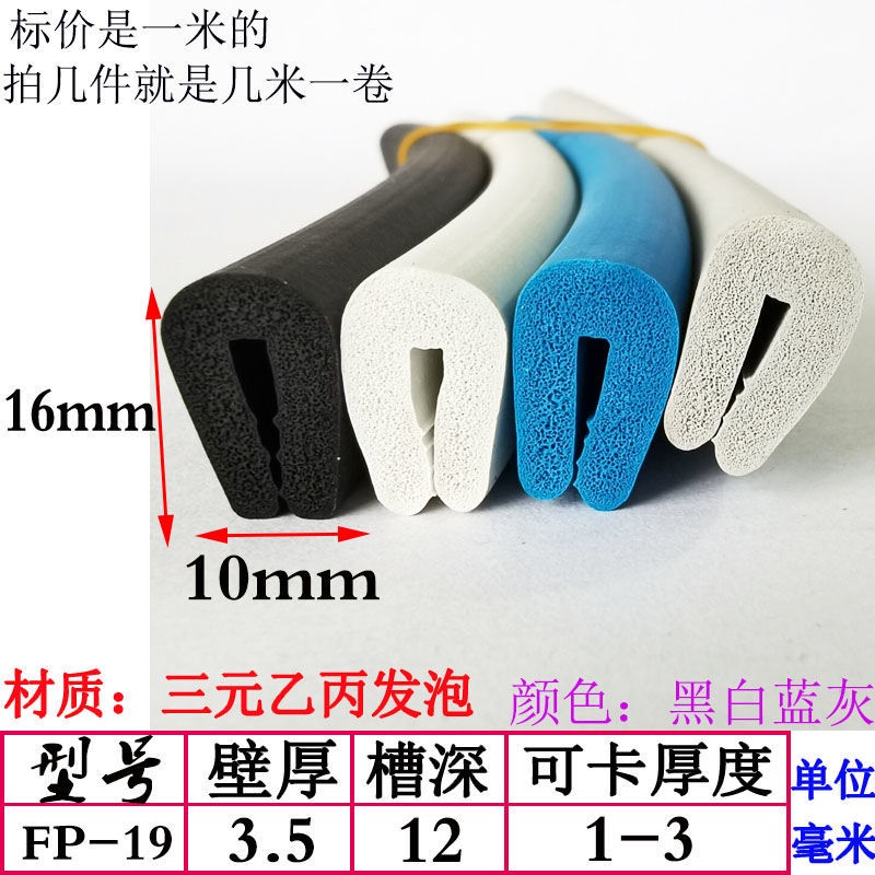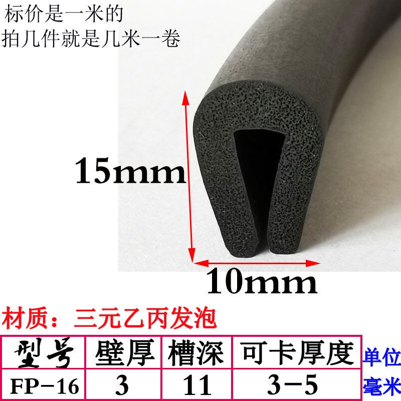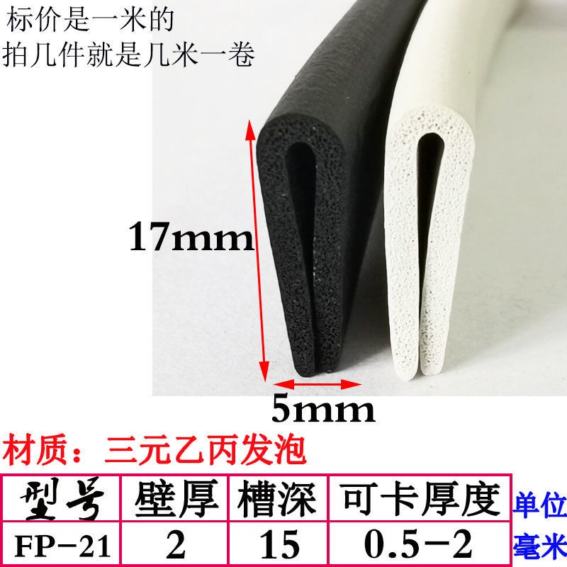 EPDM Foam U-Shaped Rubber Sealing Strip Fiberglass Reinforced Plate Edge Anti-Scratch Anti-Collision Trim Sponge Bar/EPDM Rubber Foam Sponge Bar Seal Strip Flat 7UPS
