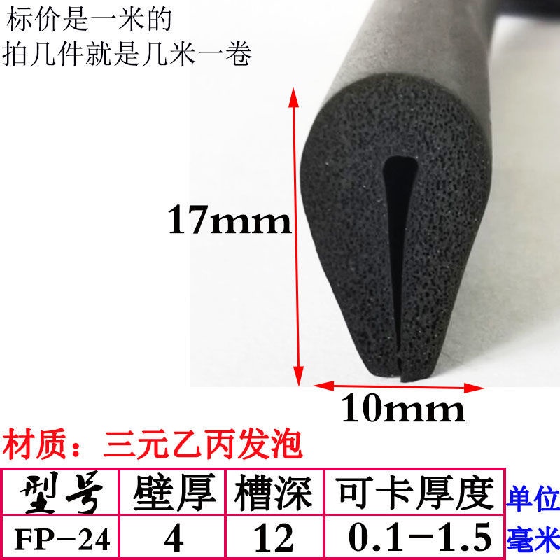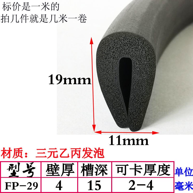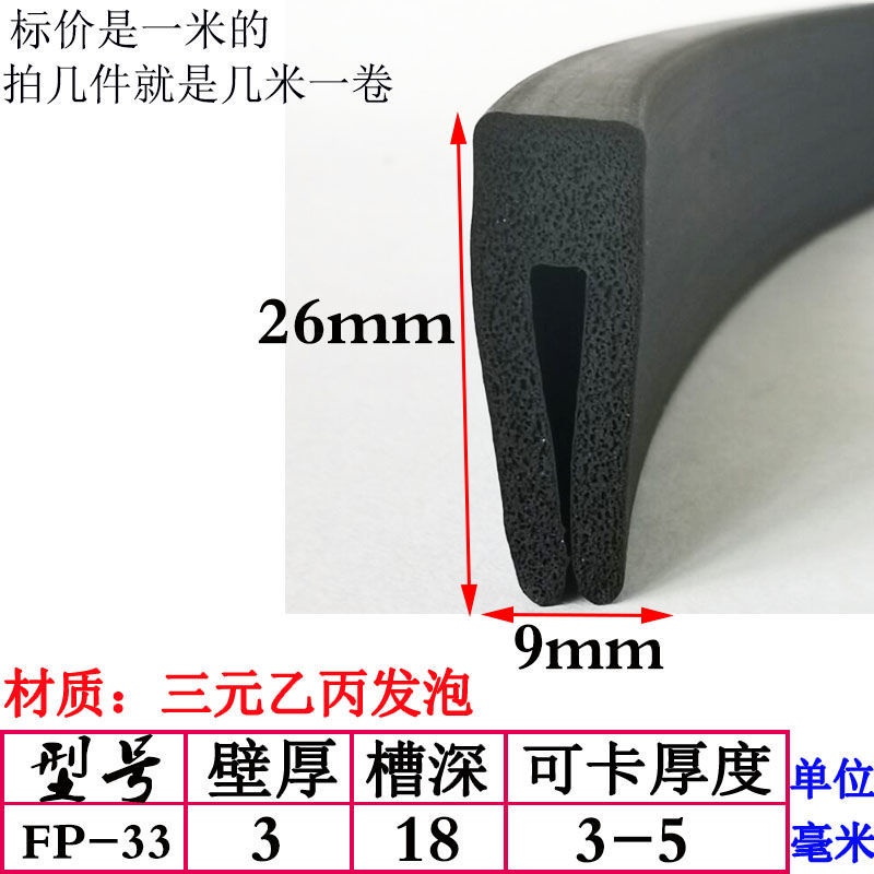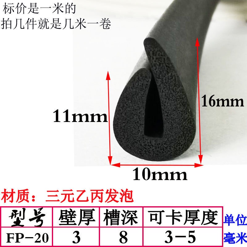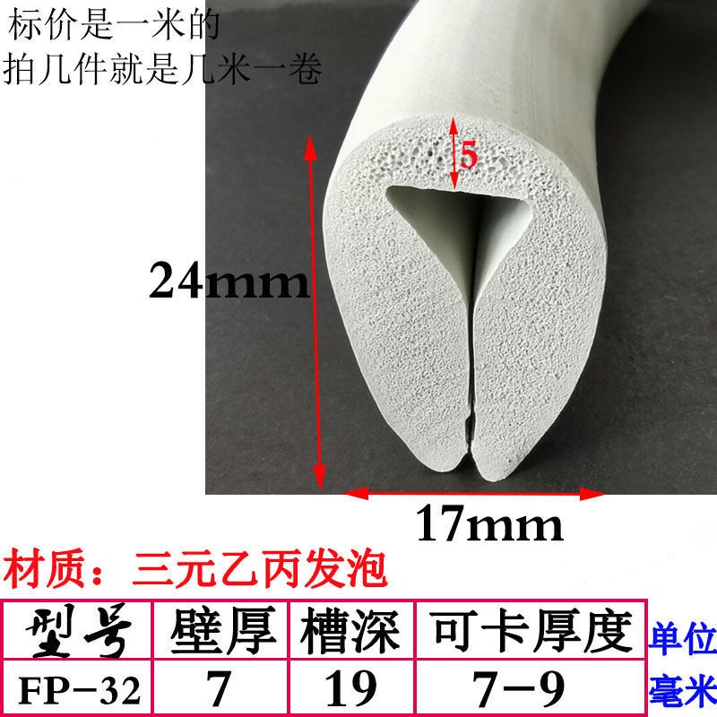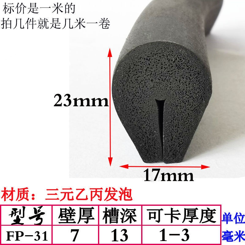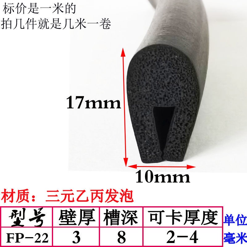EPDM Foam U-Shaped Rubber Sealing Strip Fiberglass Reinforced Plate Edge Anti-Scratch Anti-Collision Trim Sponge Bar/EPDM Rubber Foam Sponge Bar Seal Strip Flat 7UPS