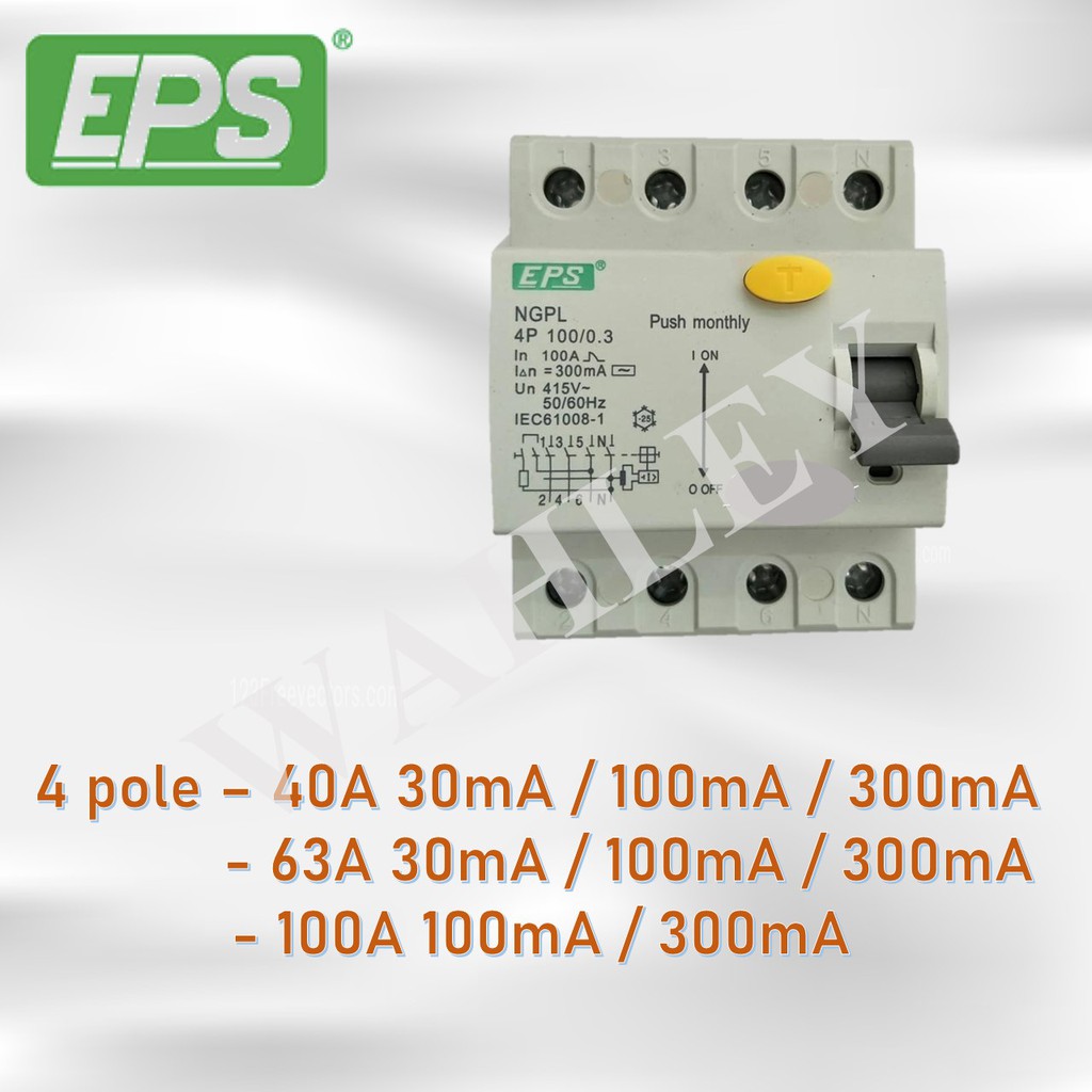 EPS ELCB/RCCB 40A/63A/100A | 4 Pole | 30mA/100mA/300mA (SIRIM APPROVED)
