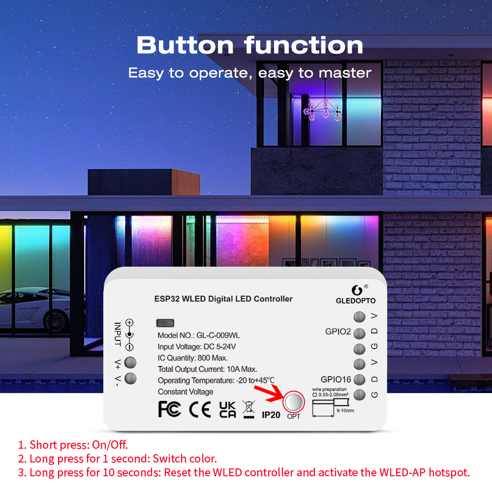 ESP32 WLED RGB RGBW Digital Strip Controller Supports WS2811 SK6812 SM16703P WS2812B APP Web MQTT and Home Assistant Automation