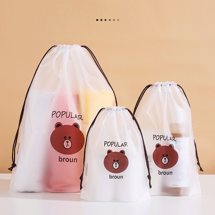 EVA Frosted Drawstring Pocket Bear Drawstring Travel Storage Bag Face Towel Drawstring Plastic Bag