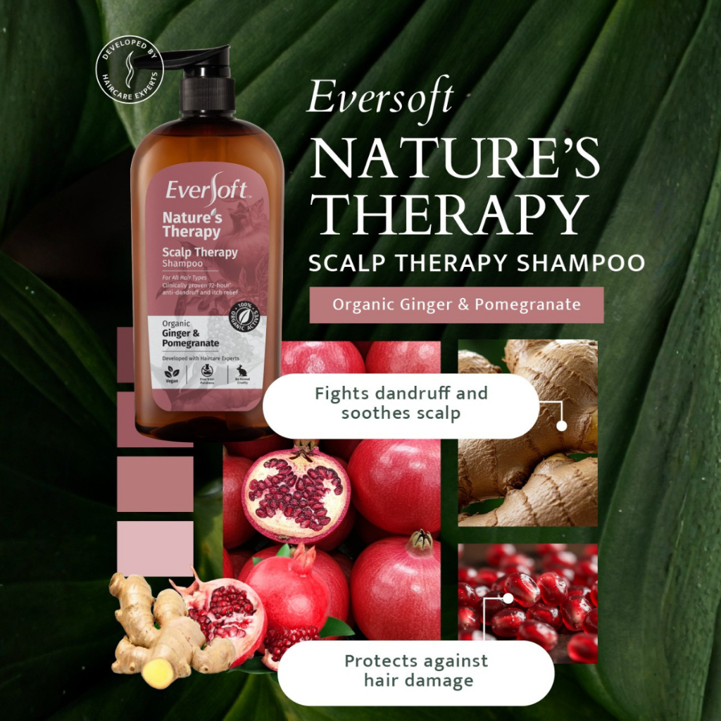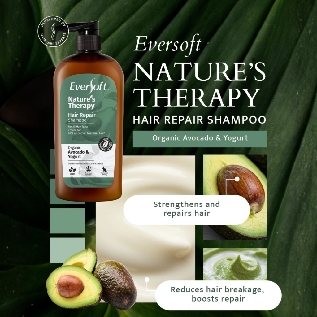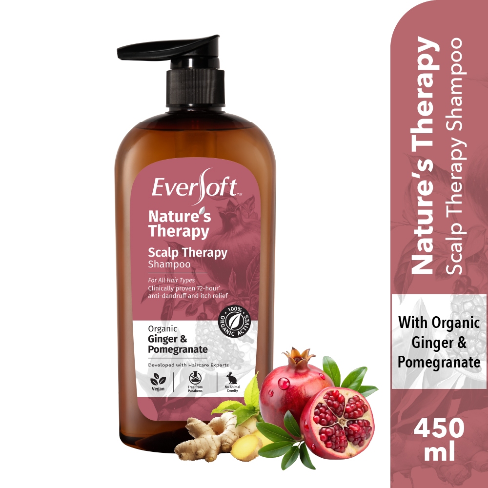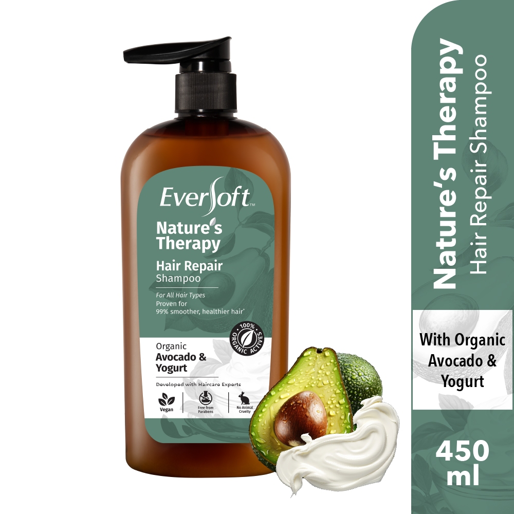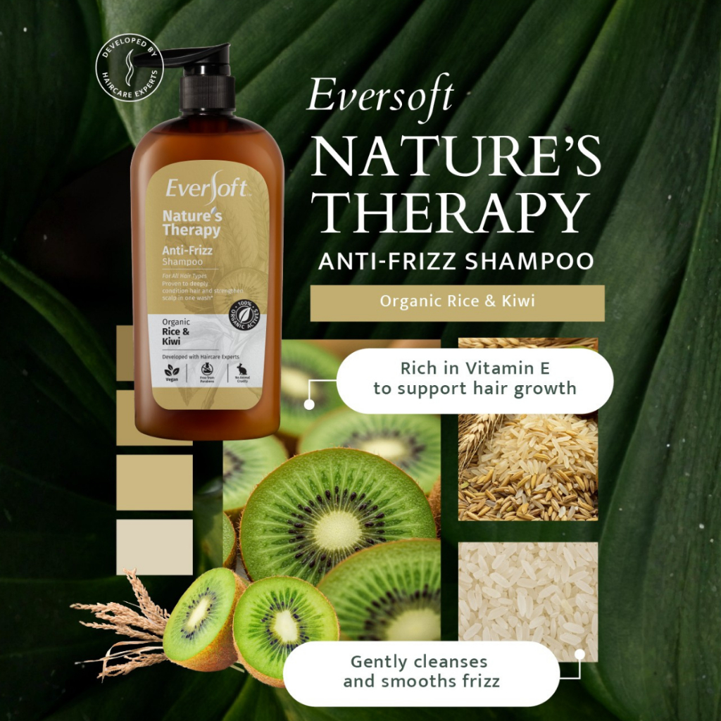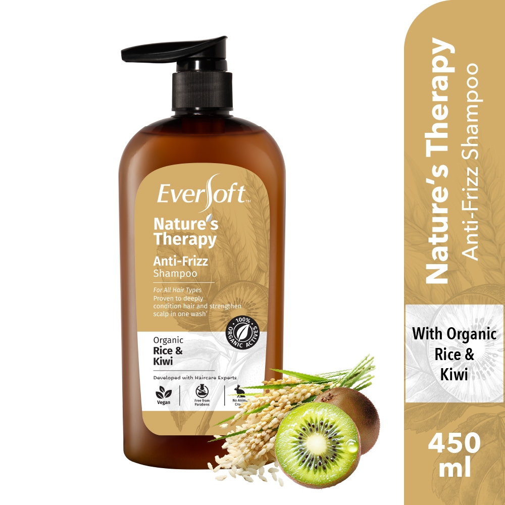 EVERSOFT Nature's Therapy Organic Shampoo 450ml - 3 Variants : Anti-Frizz / Hair Repair / Scalp Therapy