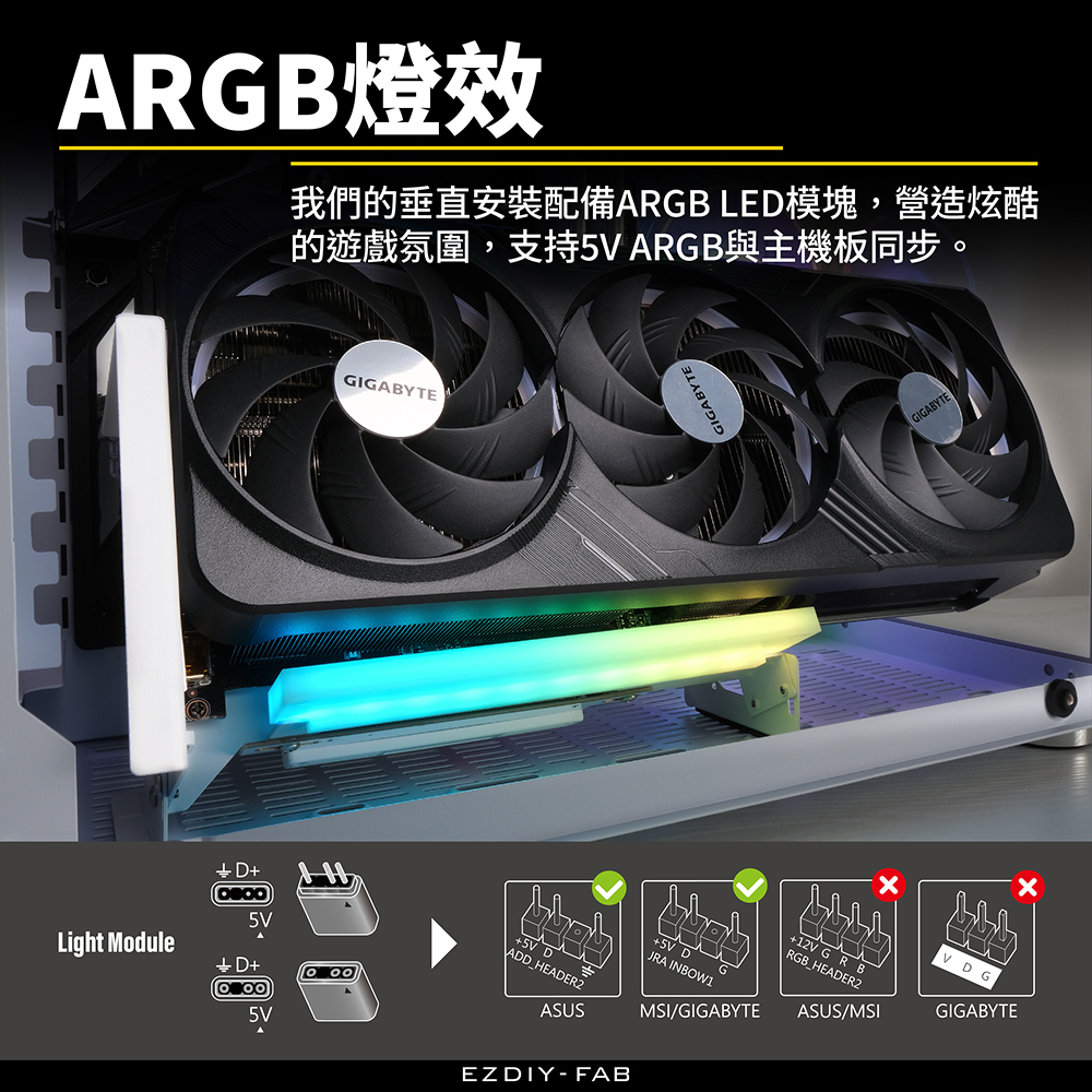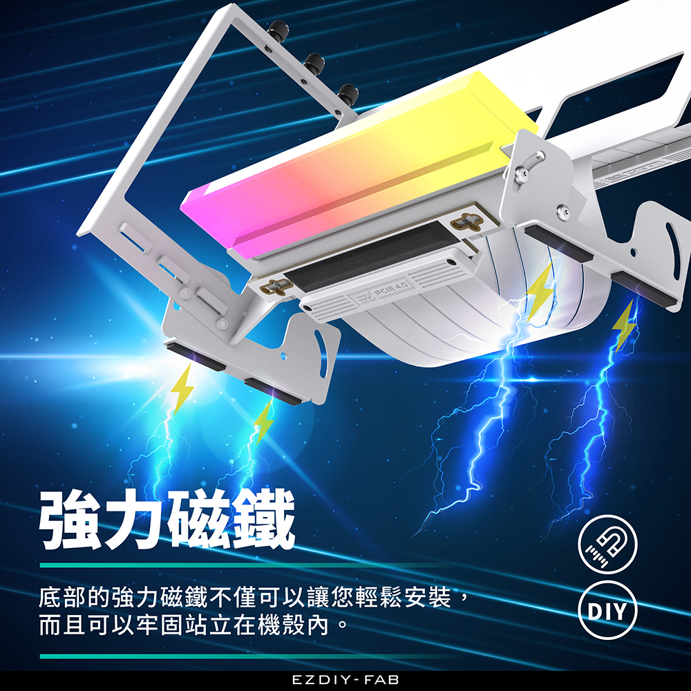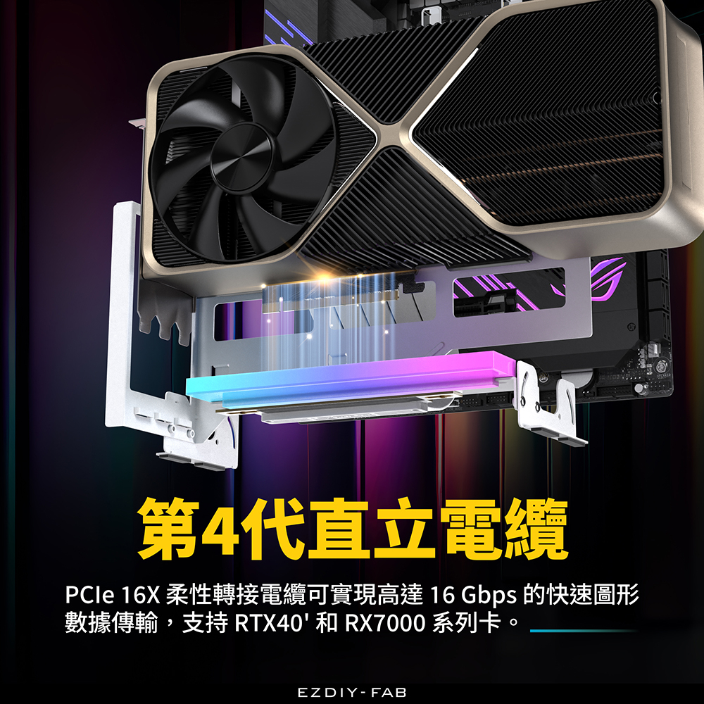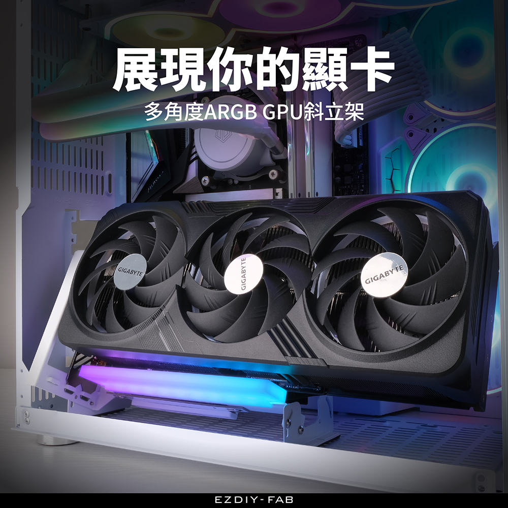 EZDIY-FAB ARGB Inclined Vertical Graphics Card Holder White With PCIe4.0 Gen4 17cm Flat Cable Multi-Angle Adjustment