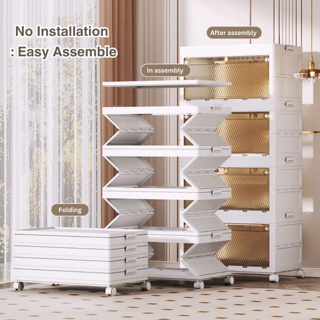 Easyhome.sg Foldable Cabinet JG2035/2036 Stackable Storage Drawer Cabinet Wardrobe Home Organizer Storage Box