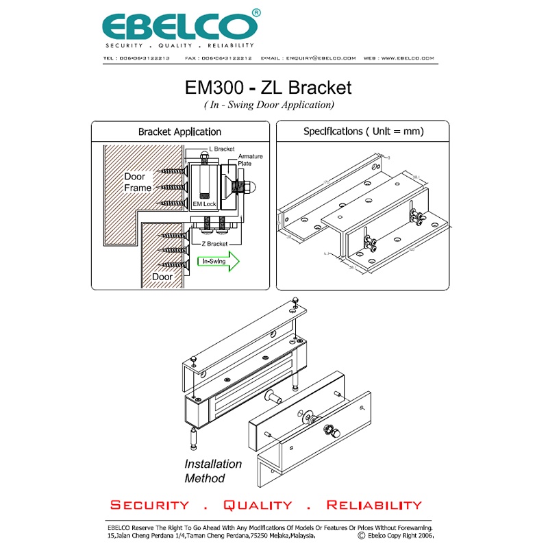 Ebelco EM300 ZL Bracket for 300lbs EM Lock Fire Rated HDB Gate