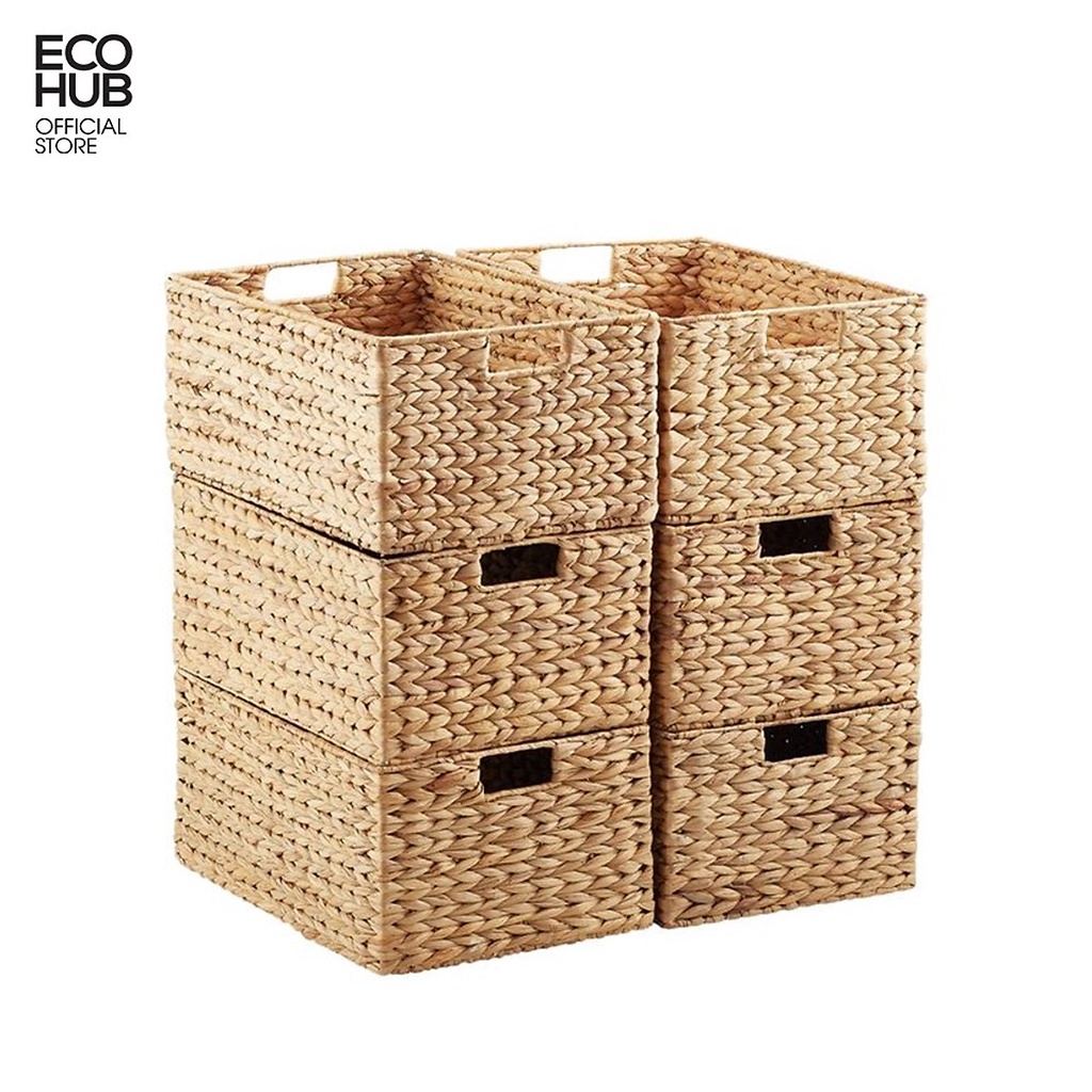ECOHUB Water Hyacinth Basket, Rectangular, With handle, Many sizes. (Water Hyacinth Storage Bins with Handles) | E00184
