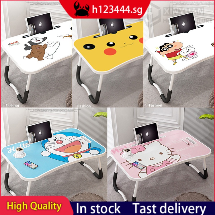 Economical and practical study desks simple small table bed desk foldable computer desk with card slots and cup holder Doraemon kitty cat Pikachu