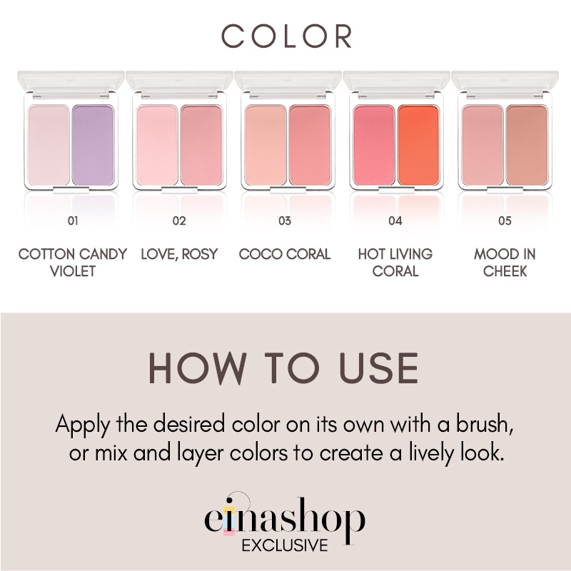Einashop x 2aN Dual Cheek in 5 Colours Korean Makeup Blush