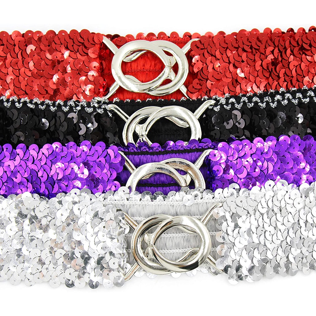 Elastic Belt for Women,Stretchy Shiny Crystal Waist Belt Bling Wide Waist Belt Belt Sparkly Glitter Sequin Decor Metal Buckles for Women Dress Skirts Corset Cinch